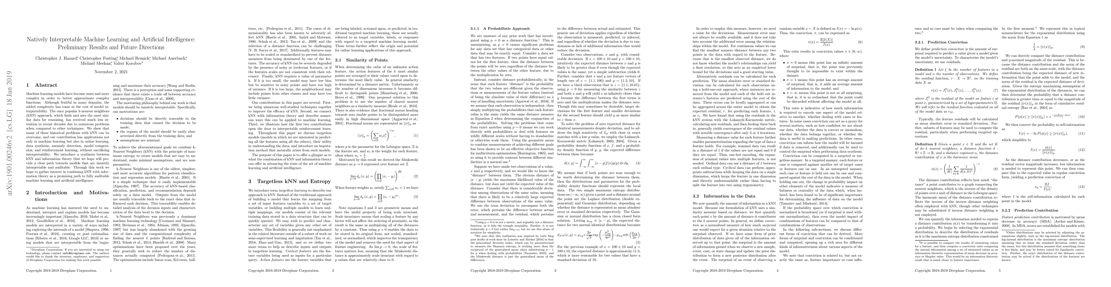 Machine learning models have become more and more complex in order to better approximate complex functions. Although fruitful in many domains, the added complexity has come at the cost of model interpretability. The once popular k-nearest neighbors (kNN) approach, which finds and uses the most similar data for reasoning, has received much less attention in recent decades due to numerous problems when compared to other techniques. We show that many of these historical problems with kNN can be overcome, and our contribution has applications not only in machine learning but also in online learning, data synthesis, anomaly detection, model compression, and reinforcement learning, without sacrificing interpretability. We introduce a synthesis between kNN and information theory that we hope will provide a clear path towards models that are innately interpretable and auditable. Through this work we hope to gather interest in combining kNN with information theory as a promising path to fully auditable machine learning and artificial intelligence.