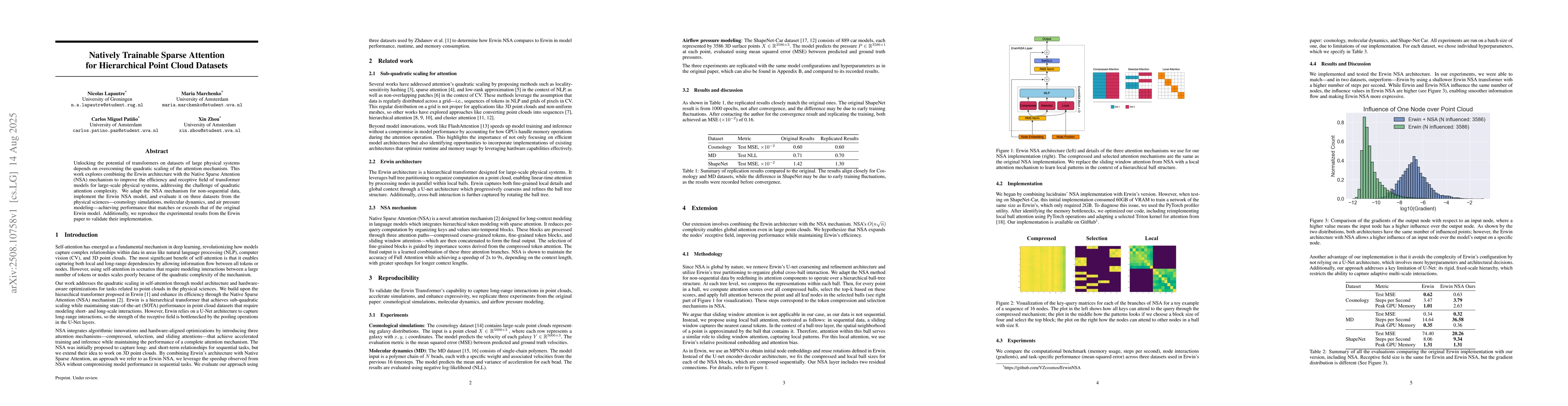 This research adapts the Native Sparse Attention (NSA) mechanism to non-sequential data, enhancing transformer models for large-scale physical systems. Evaluated on cosmology, molecular dynamics, and air pressure datasets, the Erwin NSA model matches or surpasses original Erwin model performance, addressing attention complexity challenges.