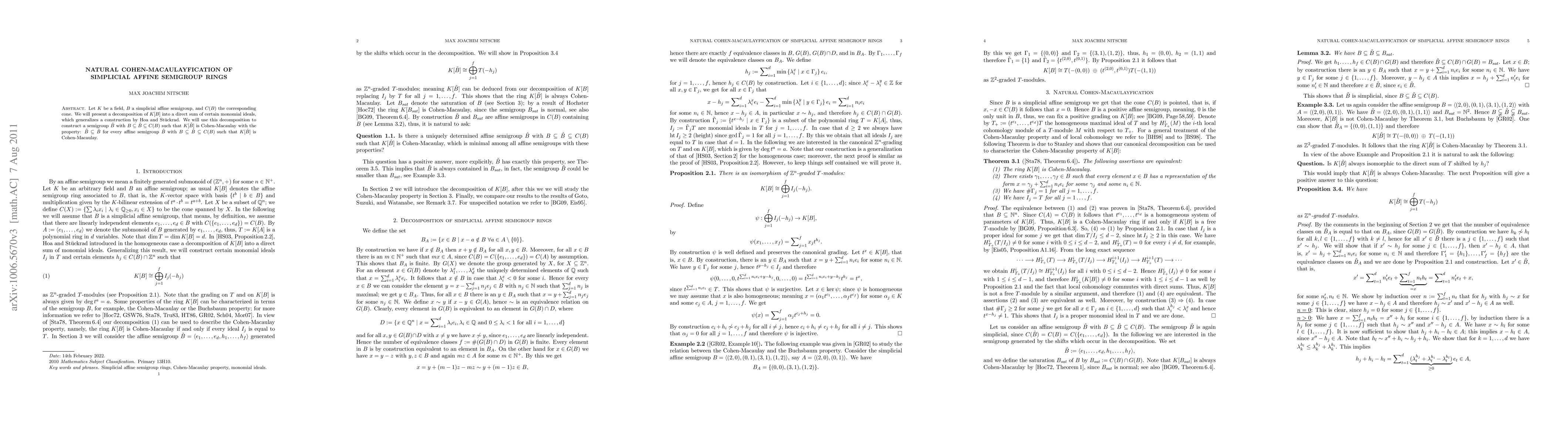 Let $K$ be a field, $B$ a simplicial affine semigroup, and $C(B)$ the corresponding cone. We will present a decomposition of $K[B]$ into a direct sum of certain monomial ideals, which generalizes a construction by Hoa and St\"uckrad. We will use this decomposition to construct a semigroup $\tilde B$ with $B \subseteq \tilde B \subseteq C(B)$ such that $K[\tilde B]$ is Cohen-Macaulay with the property: $\tilde B \subseteq \hat B$ for every affine semigroup $\hat B$ with $B \subseteq \hat B \subseteq C(B)$ such that $K[\hat B]$ is Cohen-Macaulay.