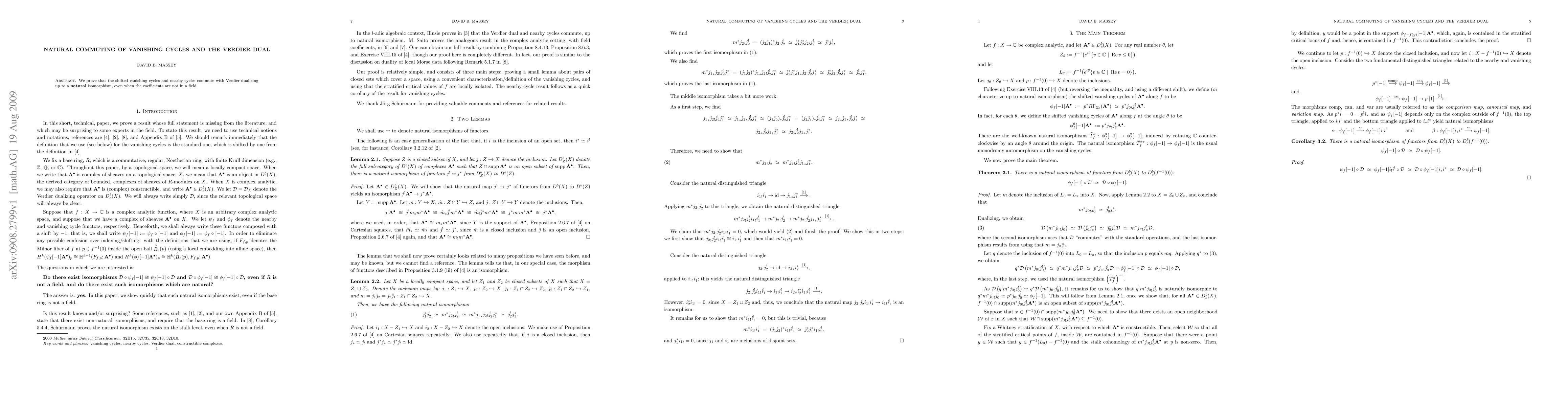 Researchers prove that vanishing cycles and Verdier dualize naturally to commute with nearby cycles, even when coefficients aren't in a field.