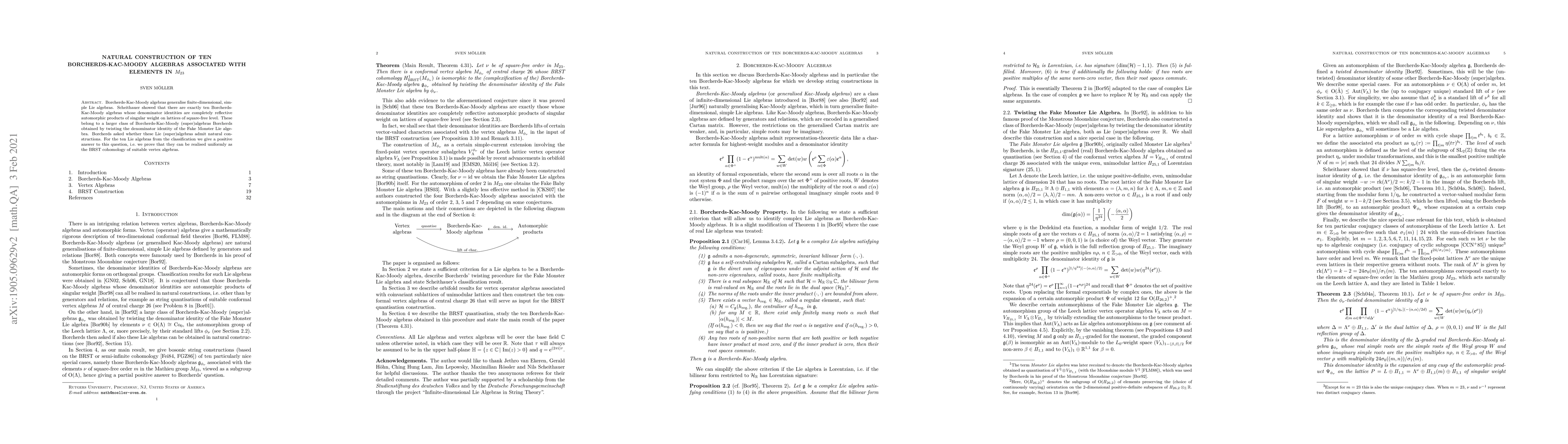 Researchers prove that ten Borcherds-Kac-Moody algebras can be naturally constructed as BRST cohomology of vertex algebras, answering a question posed by mathematician Nigel Borcherds.