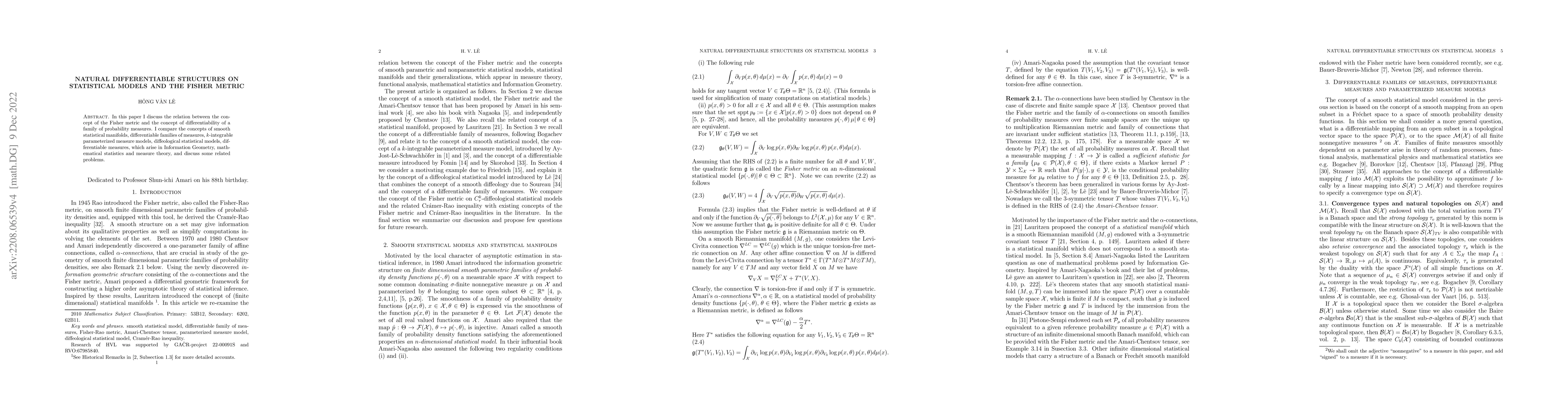 This paper explores the connection between the Fisher metric and the differentiability of probability measures, comparing various concepts like smooth statistical manifolds and differentiable families of measures within the context of Information Geometry, mathematical statistics, and measure theory.