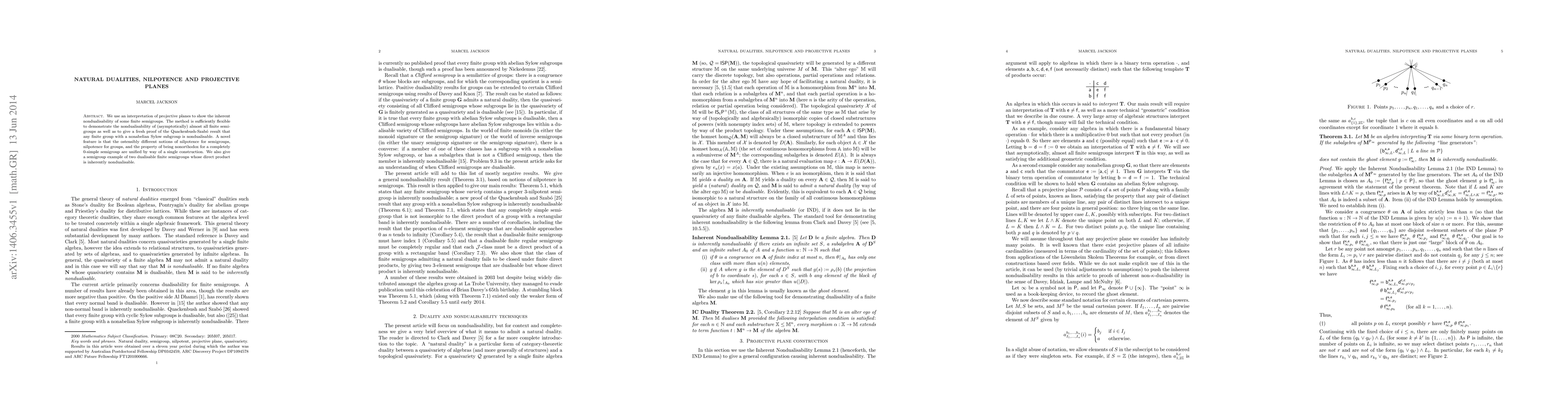 The paper demonstrates that many finite semigroups are inherently nondualisable using a projective plane interpretation, unifying notions of nilpotence and providing new insights into semigroup duality.