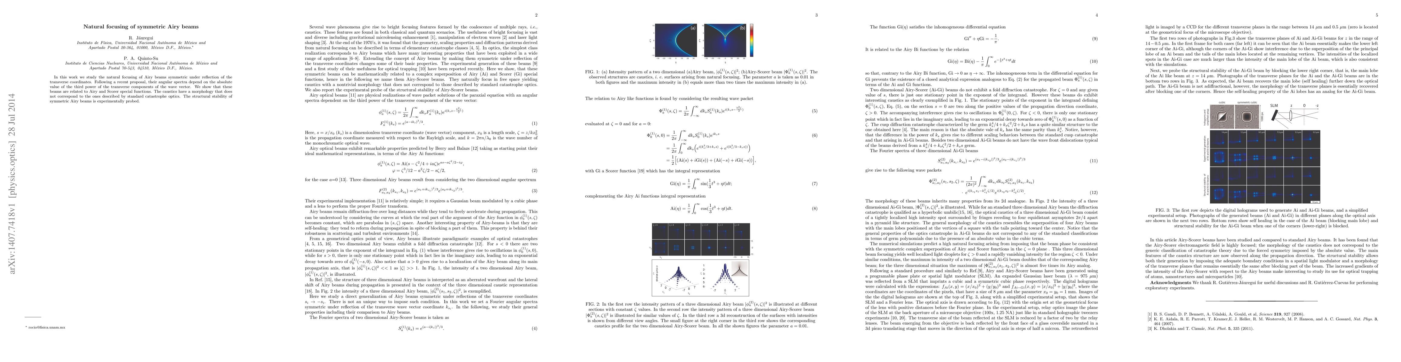 This research investigates the unique focusing behavior of symmetric Airy beams, revealing their connection to Airy and Scorer functions and demonstrating that their caustics differ from standard optical catastrophes. Experimental validation of the structural stability of these beams is also presented.