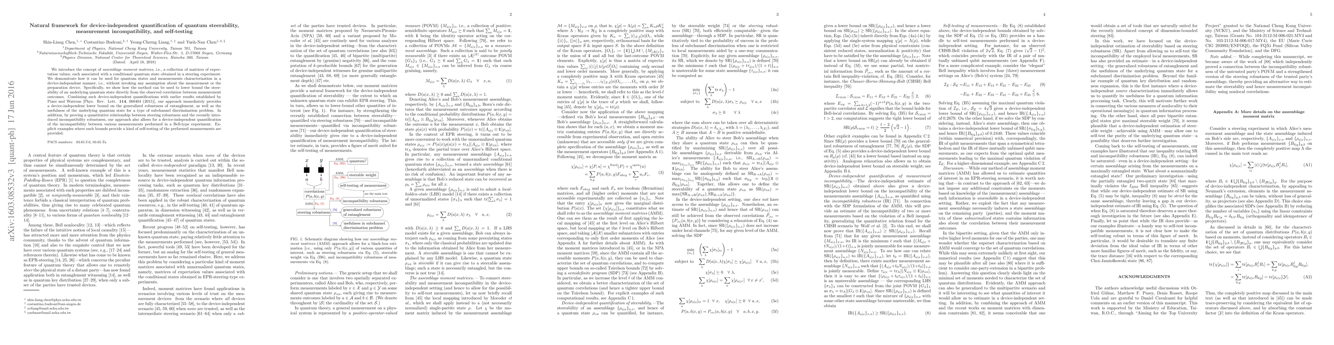 This paper introduces assemblage moment matrices to characterize quantum states and measurements in a device-independent way, enabling quantification of quantum steerability, measurement incompatibility, and self-testing without relying on assumptions about the measurement or preparation devices. The method provides device-independent bounds for entanglement robustness and measurement incompatibility.