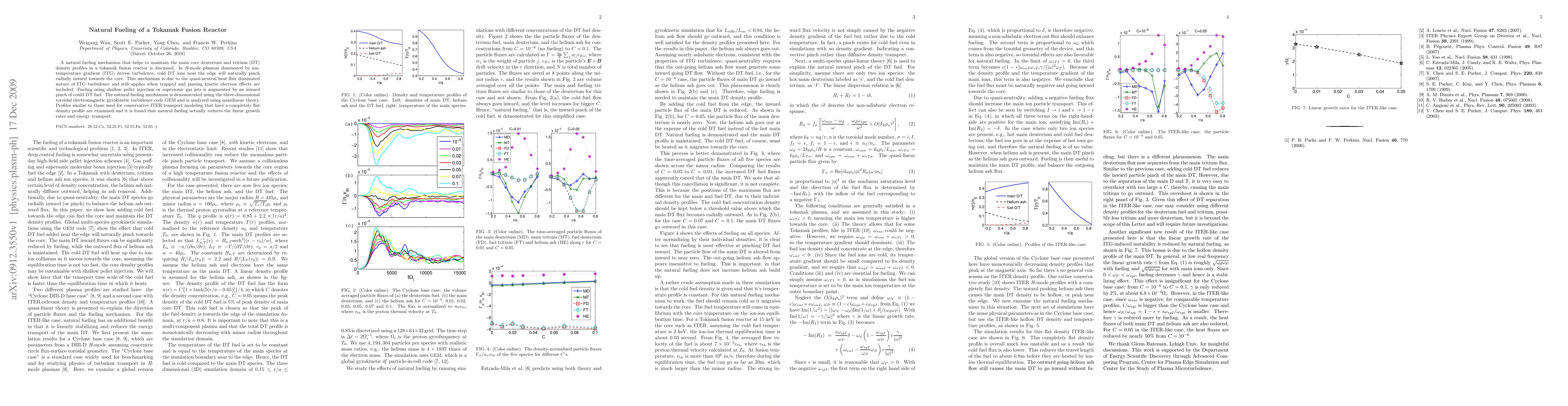 A natural fueling mechanism that helps to maintain the main core deuterium and tritium (DT) density profiles in a tokamak fusion reactor is discussed. In H-mode plasmas dominated by ion- temperature gradient (ITG) driven turbulence, cold DT ions near the edge will naturally pinch radially inward towards the core. This mechanism is due to the quasi-neutral heat flux dominated nature of ITG turbulence and still applies when trapped and passing kinetic electron effects are included. Fueling using shallow pellet injection or supersonic gas jets is augmented by an inward pinch of could DT fuel. The natural fueling mechanism is demonstrated using the three-dimensional toroidal electromagnetic gyrokinetic turbulence code GEM and is analyzed using quasilinear theory. Profiles similar to those used for conservative ITER transport modeling that have a completely flat density profile are examined and it is found that natural fueling actually reduces the linear growth rates and energy transport.