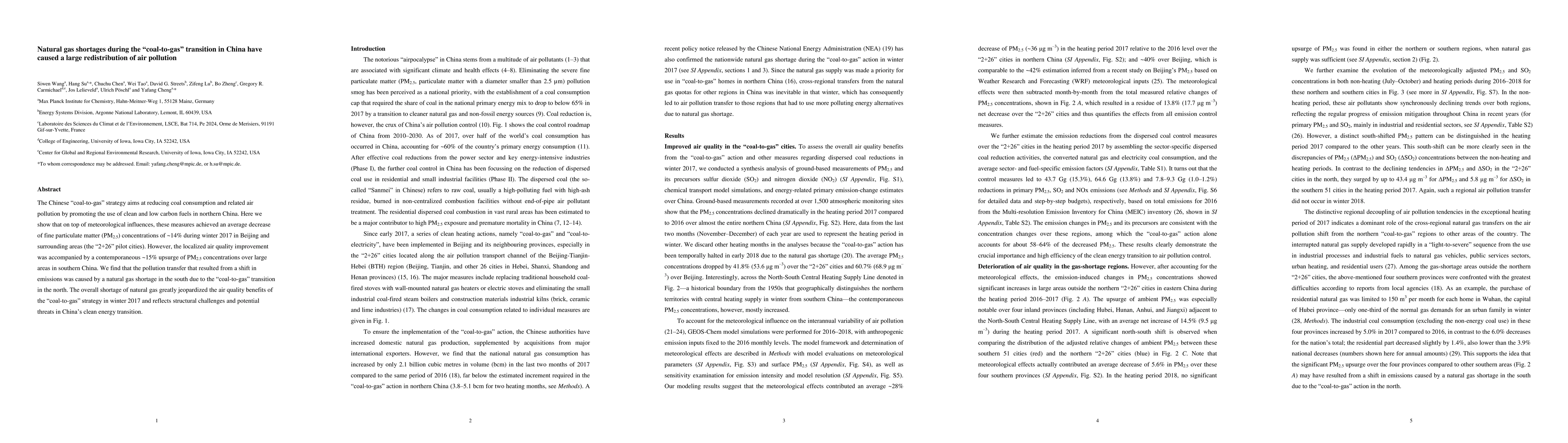The "coal-to-gas" strategy in China reduced PM2.5 in northern cities but led to a significant increase in southern regions due to natural gas shortages, highlighting the complex impacts of energy transition on air quality.