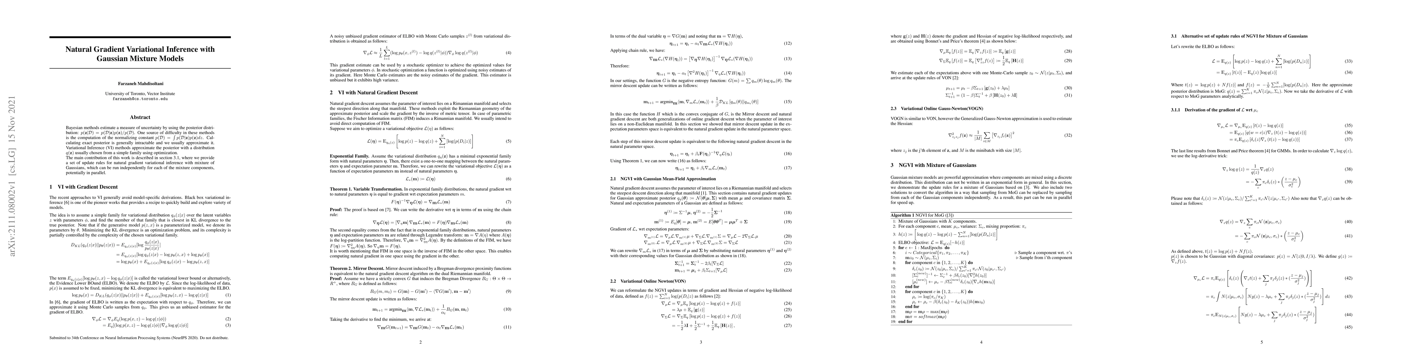 This paper proposes a set of natural gradient update rules for variational inference with Gaussian mixture models, enabling independent and potentially parallel optimization for each mixture component, addressing the challenge of computing the normalizing constant in Bayesian methods.