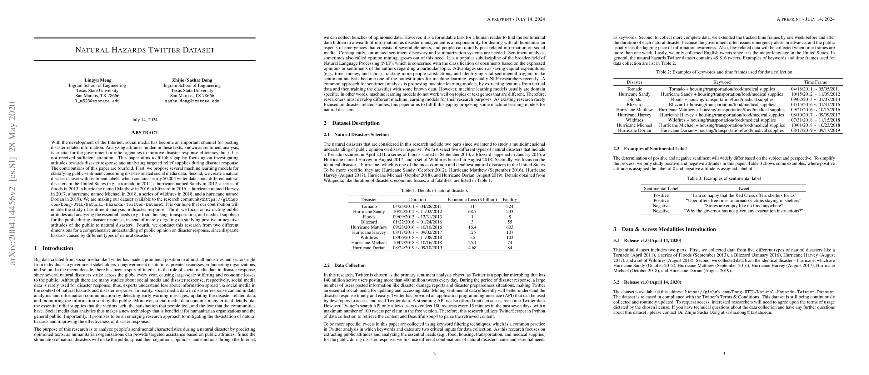This paper introduces a comprehensive natural hazards Twitter dataset for sentiment analysis, focusing on public attitudes towards disaster response and targeted relief supplies. It proposes machine learning models for sentiment classification, creates a labeled dataset of nearly 50,000 tweets about various U.S. natural disasters, and makes it publicly available for further research.