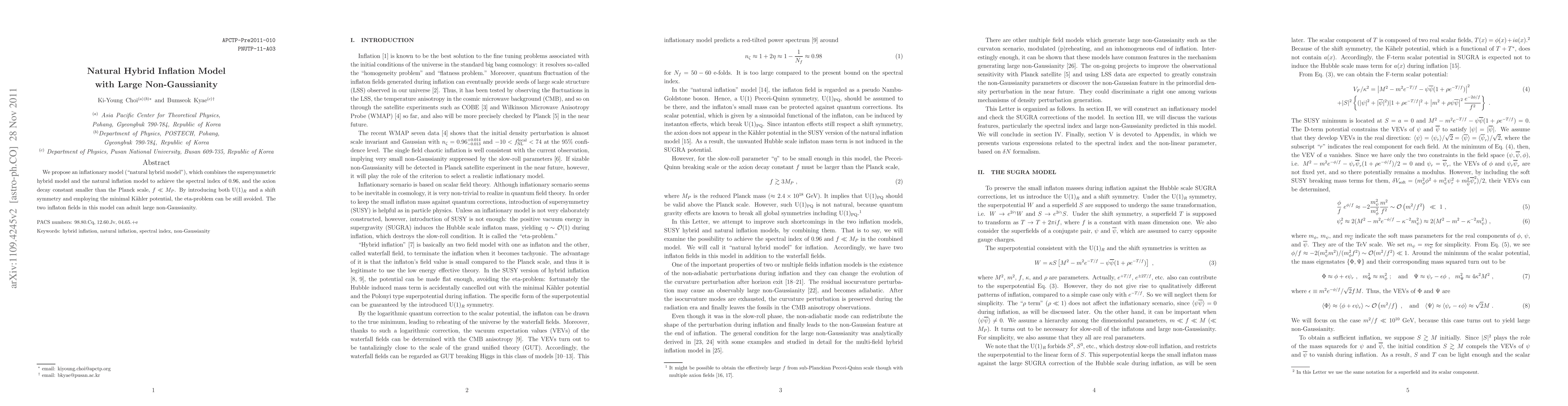 This paper proposes a "natural hybrid inflation model" that merges supersymmetric hybrid and natural inflation models to achieve a spectral index of 0.96 and a small axion decay constant. The model avoids the eta-problem while allowing for large non-Gaussianity in the two inflaton fields.