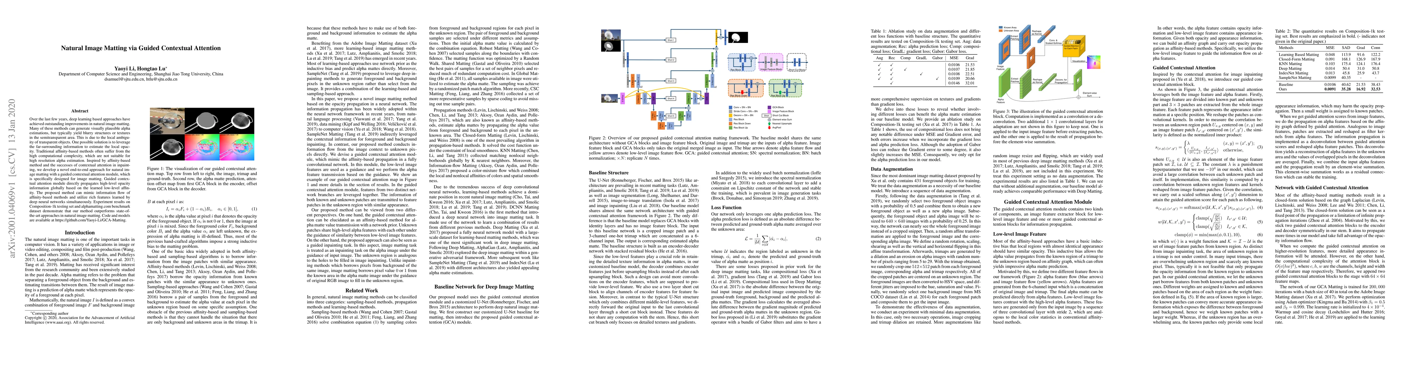 This paper proposes a novel end-to-end approach for natural image matting using a guided contextual attention module that leverages global information to improve local opacity estimation. The method outperforms state-of-the-art techniques on benchmark datasets.