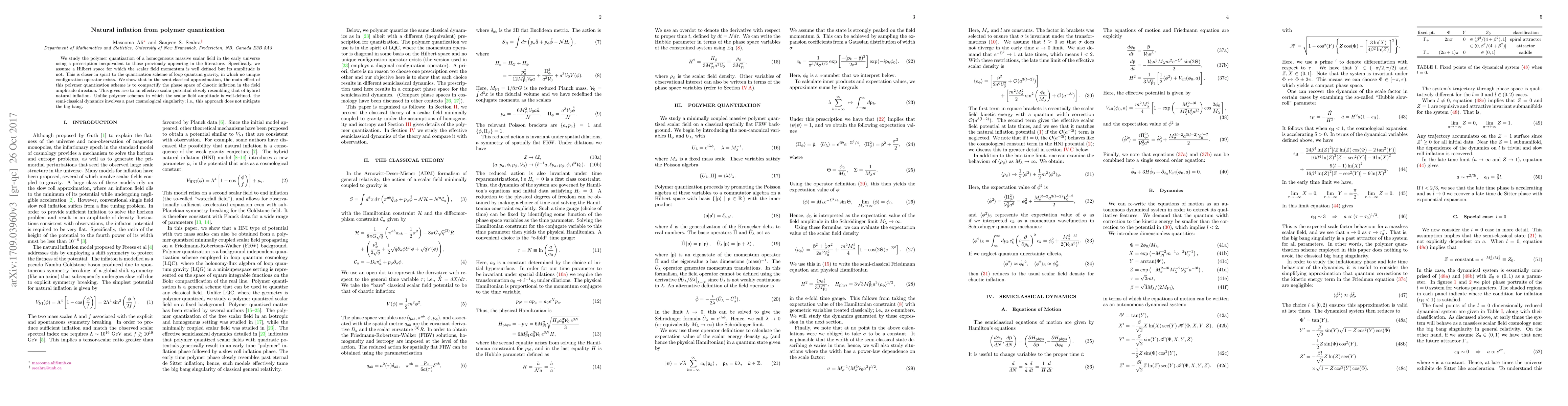 This paper explores polymer quantization of a massive scalar field in the early universe, showing that it leads to a compactified phase space and an effective potential similar to hybrid natural inflation, while also introducing a past cosmological singularity.
