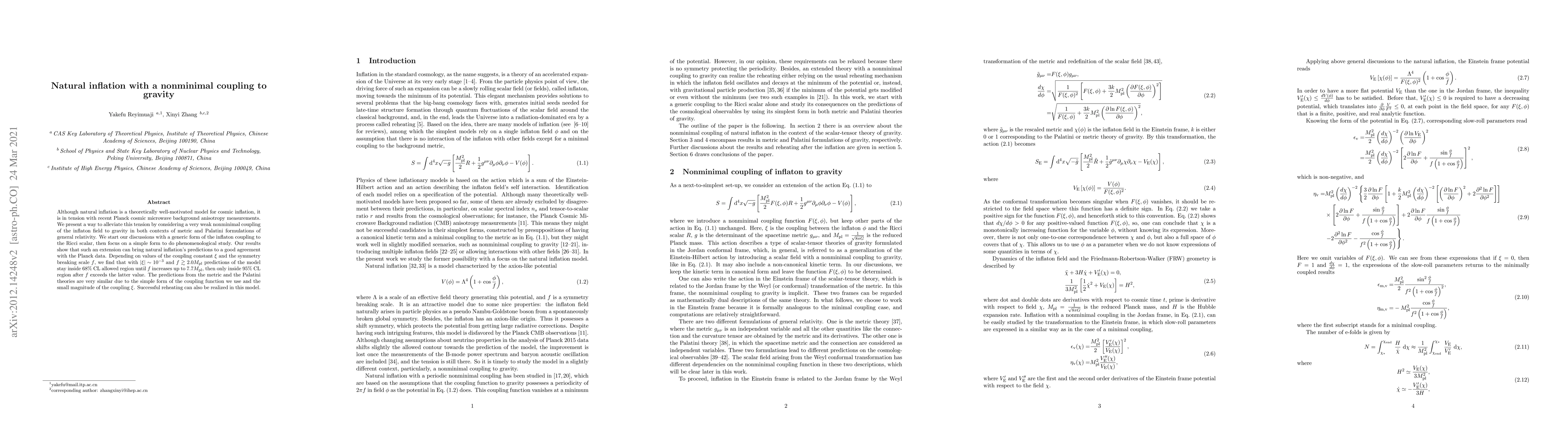 This paper proposes a nonminimal coupling of the inflaton field to gravity to reconcile natural inflation models with recent Planck data. The study shows that with a small coupling constant $\xi \sim 10^{-3}$ and a symmetry breaking scale $f \gtrsim 2.0 M_{\mathrm{pl}}$, natural inflation predictions align well with observational constraints, maintaining viability up to $f \approx 7.7 M_{\mathrm{pl}}$.