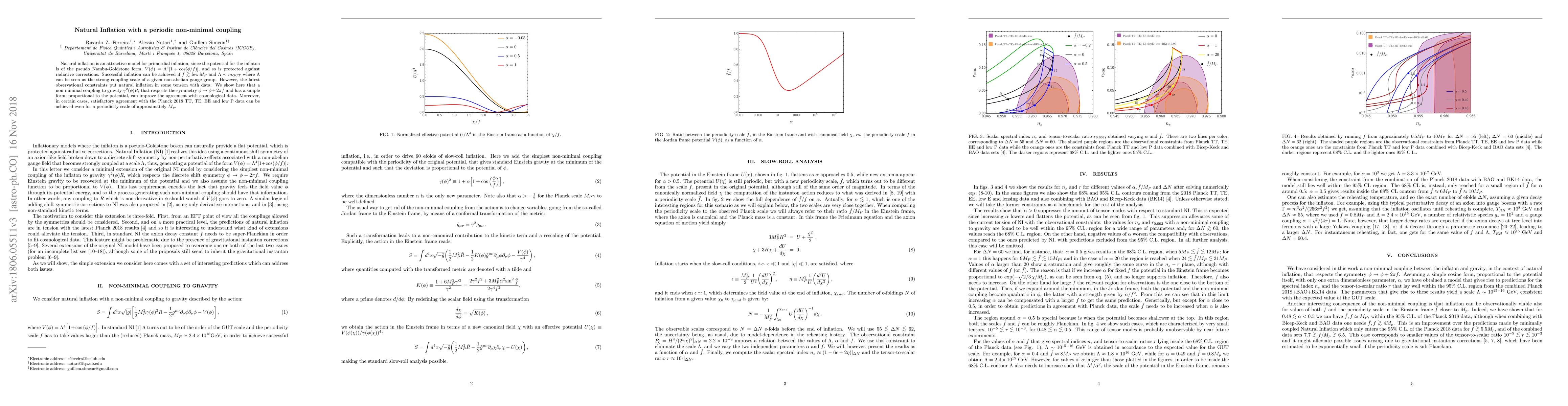 Natural inflation is an attractive model for primordial inflation, since the potential for the inflaton is of the pseudo Nambu-Goldstone form, $V(\phi)=\Lambda^4 [1+\cos (\phi/f)]$, and so is protected against radiative corrections. Successful inflation can be achieved if $f \gtrsim {\rm few}\, M_{P}$ and $\Lambda \sim m_{GUT}$ where $\Lambda$ can be seen as the strong coupling scale of a given non-abelian gauge group. However, the latest observational constraints put natural inflation in some tension with data. We show here that a non-minimal coupling to gravity $\gamma^2(\phi) R$, that respects the symmetry $\phi\rightarrow \phi+2 \pi f$ and has a simple form, proportional to the potential, can improve the agreement with cosmological data. Moreover, in certain cases, satisfactory agreement with the Planck 2018 TT, TE, EE and low P data can be achieved even for a periodicity scale of approximately $M_p$.