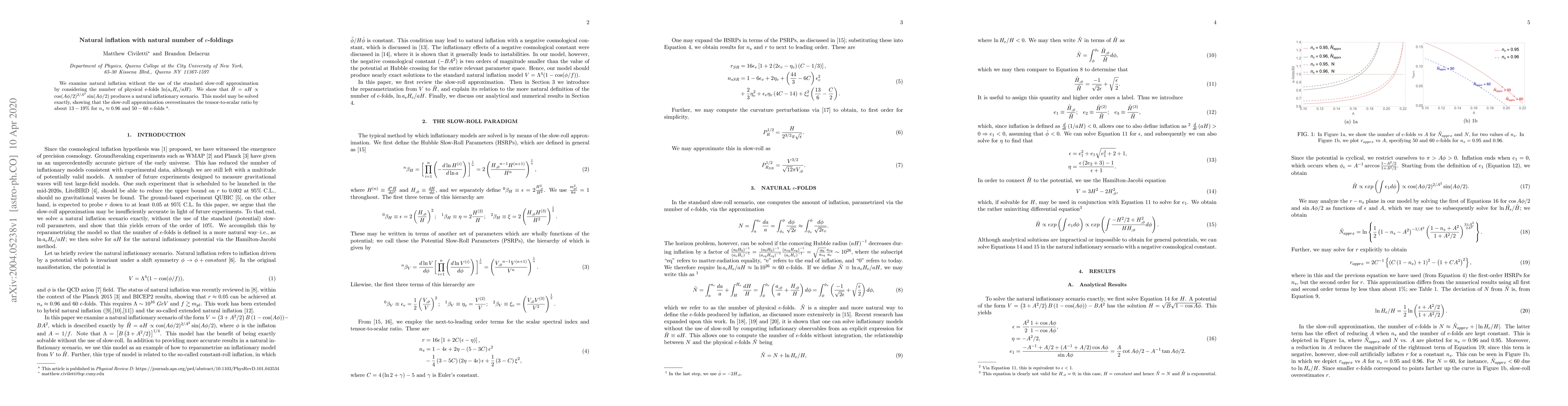 We examine natural inflation without the use of the standard slow-roll approximation by considering the number of physical e-folds $\ln (a_eH_e/aH)$. We show that $\tilde{H} = aH \propto \cos(A \phi/2)^{2/A^2} \sin(A \phi/2)$ produces a natural inflationary scenario. This model may be solved exactly, showing that the slow-roll approximation overestimates the tensor-to-scalar ratio by about $13-19 \%$ for $n_s \approx 0.96$ and $50-60$ $e$-folds.