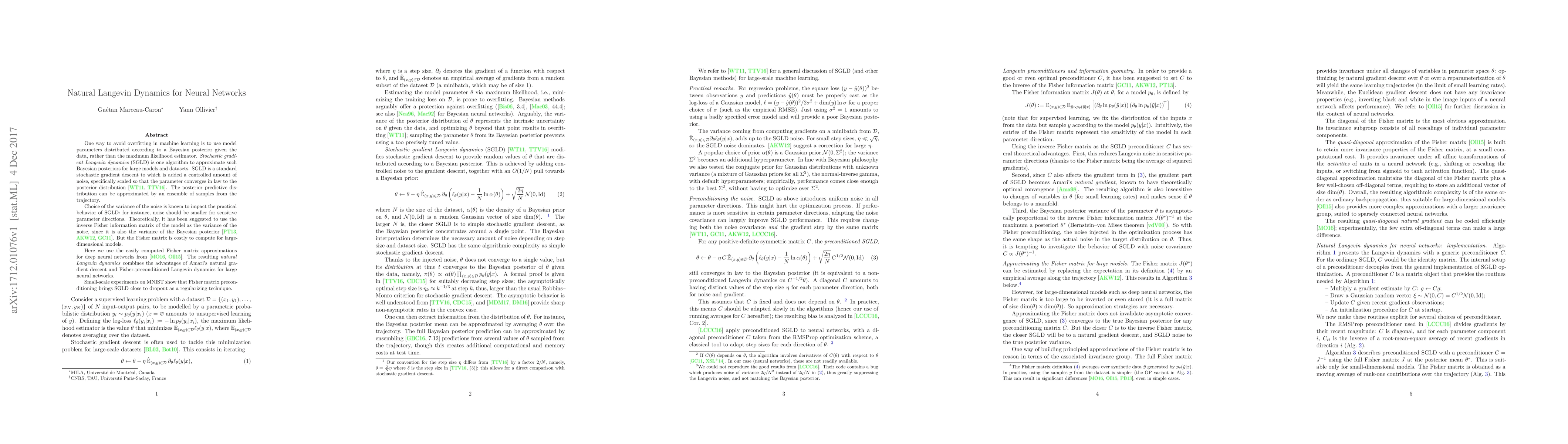Researchers developed a method to reduce overfitting in neural networks using natural Langevin dynamics with Fisher matrix preconditioning, achieving results comparable to dropout regularization in small-scale experiments.