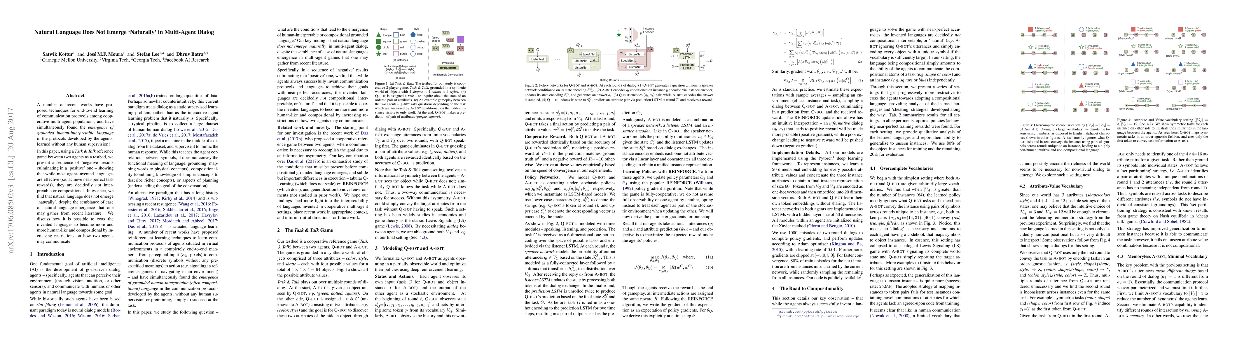 Research shows that agent-invented languages in multi-agent dialog are effective but not interpretable or compositional, contradicting recent findings of 'natural language emergence' without human supervision. Increasing communication restrictions can make these languages more human-like.