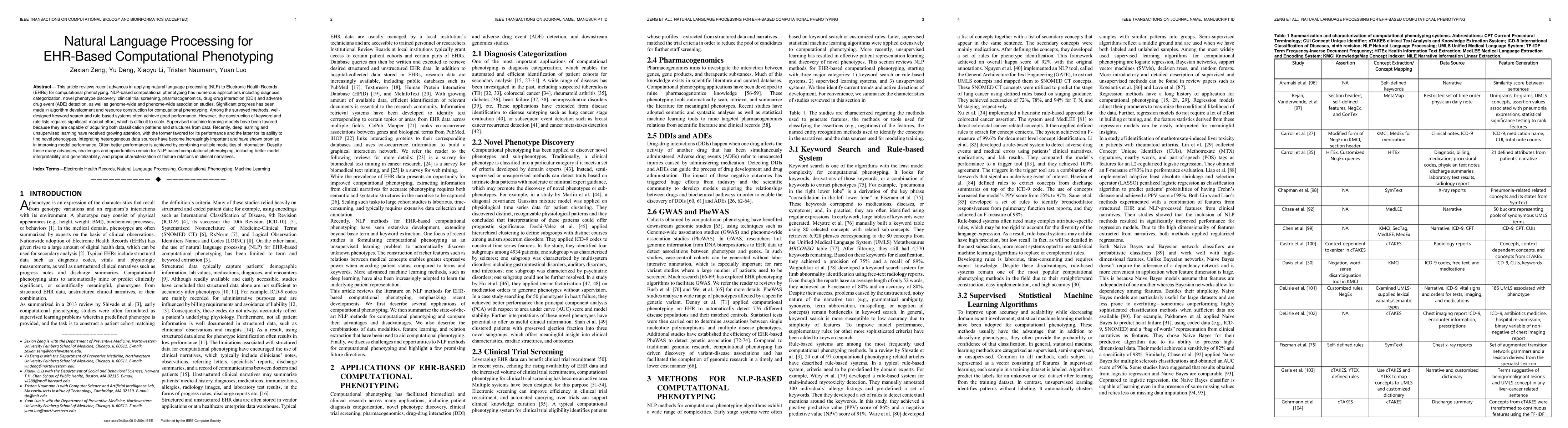 This paper reviews recent advances in using natural language processing to analyze Electronic Health Records for disease diagnosis, treatment, and personalized medicine applications. It highlights the potential of NLP-based computational phenotyping while also discussing challenges and future directions.