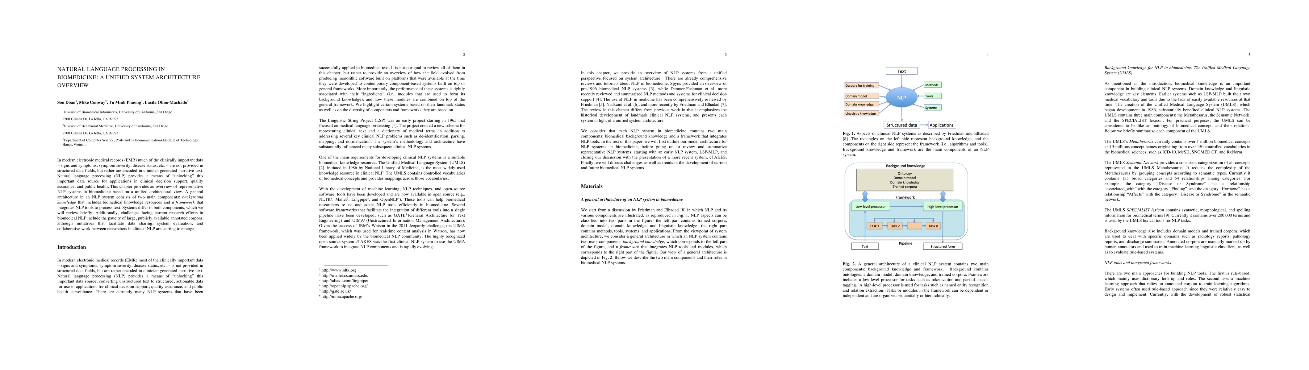 The paper provides an overview of several clinical NLP systems under a unified architectural view, discussing their background knowledge and computational frameworks.