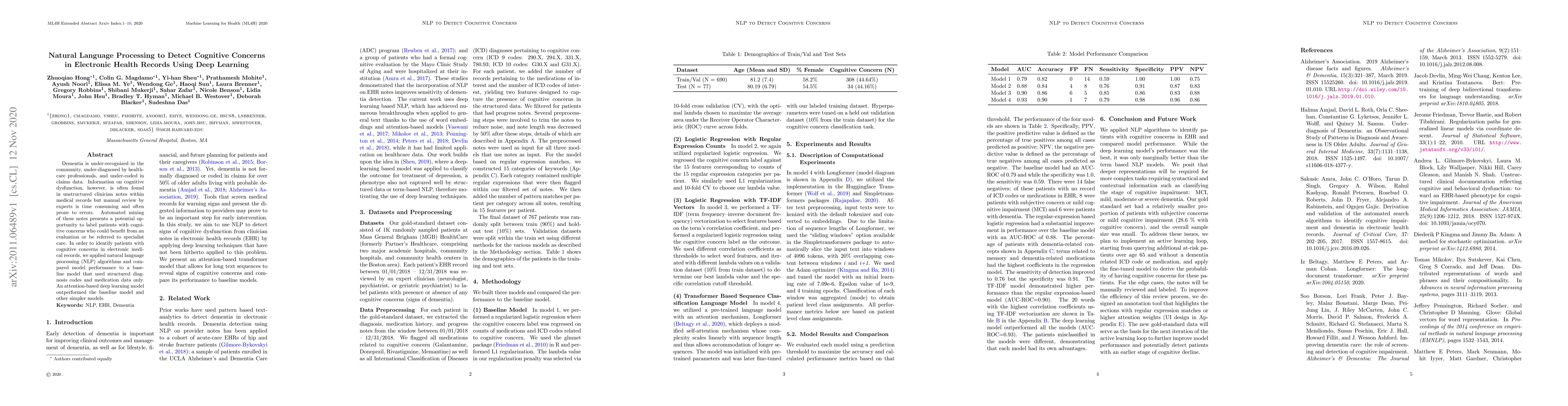 Early detection of cognitive concerns in electronic medical records can improve patient outcomes and reduce healthcare costs.