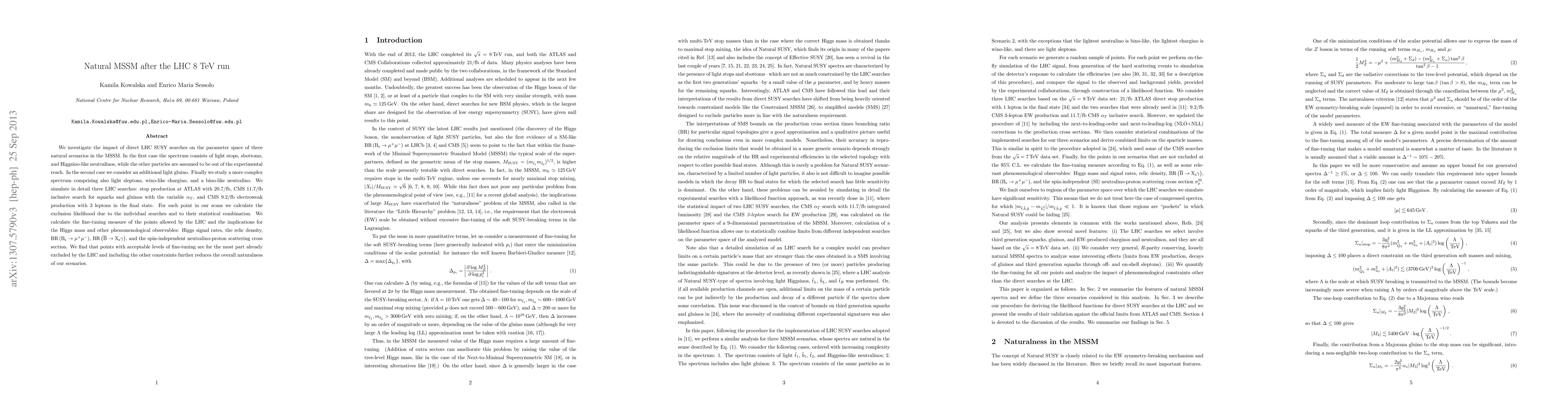 This paper examines the impact of LHC 8 TeV searches on three natural MSSM scenarios, finding that most points with acceptable fine-tuning are already excluded by the LHC, and additional constraints further diminish the naturalness of the scenarios. The study also considers the implications for Higgs mass, signal rates, and other phenomenological observables.