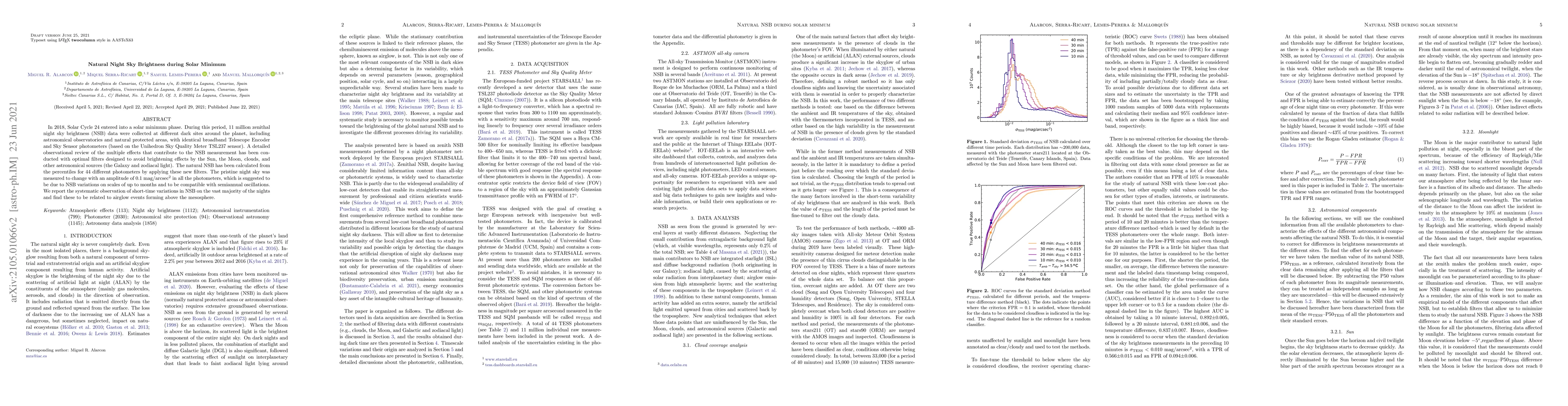 In 2018, Solar Cycle 24 entered into a solar minimum phase. During this period, 11 million zenithal night sky brightness (NSB) data were collected at different dark sites around the planet, including astronomical observatories and natural protected areas, with identical broadband Telescope Encoder and Sky Sensor photometers (based on the Unihedron Sky Quality Meter TSL237 sensor). A detailed observational review of the multiple effects that contribute to the NSB measurement has been conducted with optimal filters designed to avoid brightening effects by the Sun, the Moon, clouds, and other astronomical sources (the Galaxy and zodiacal light). The natural NSB has been calculated from the percentiles for 44 different photometers by applying these new filters. The pristine night sky was measured to change with an amplitude of 0.1 mag/arcsec$^2$ in all the photometers, which is suggested to be due to NSB variations on scales of up to months and to be compatible with semiannual oscillations. We report the systematic observation of short-time variations in NSB on the vast majority of the nights and find these to be related to airglow events forming above the mesosphere.