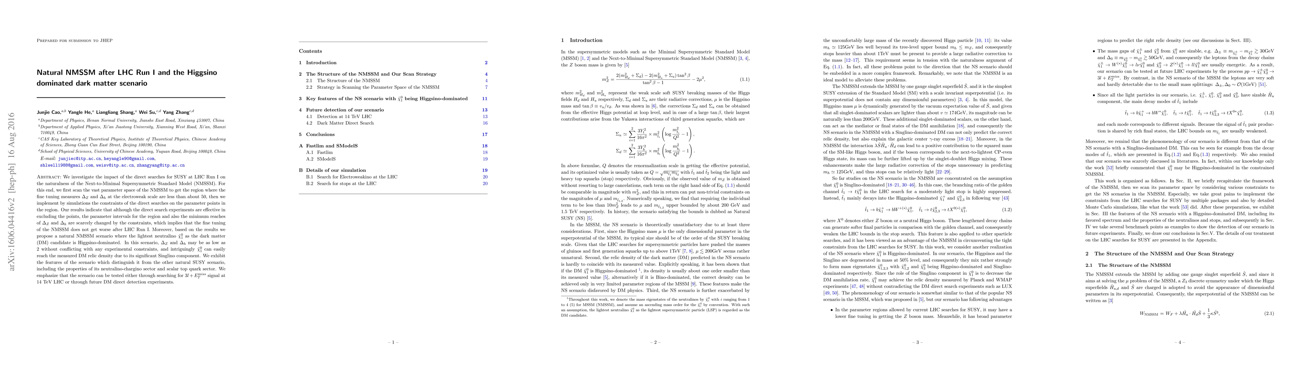 This paper examines the naturalness of the NMSSM post LHC Run I, finding minimal fine tuning changes despite direct SUSY search constraints. It proposes a Higgsino-dominated lightest neutralino as dark matter, achieving low fine tuning and relic density without experimental conflicts, and suggests testable predictions for future collider and direct detection experiments.