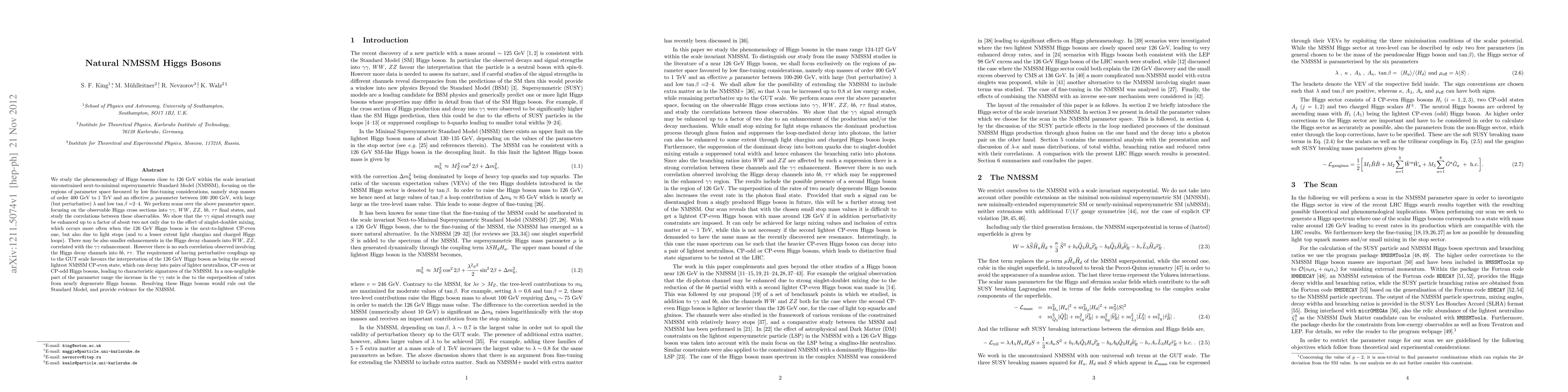 We study the phenomenology of Higgs bosons close to 126 GeV within the scale invariant unconstrained next-to-minimal supersymmetric Standard Model (NMSSM), focusing on the regions of parameter space favoured by low fine-tuning considerations, namely stop masses of order 400 GeV to 1 TeV and an effective $\mu$ parameter between 100-200 GeV, with large (but perturbative) $\lambda$ and low $\tan \beta =$2-4. We perform scans over the above parameter space, focusing on the observable Higgs cross sections into $\gamma \gamma$, $WW$, $ZZ$, $bb$, $\tau \tau$ final states, and study the correlations between these observables. We show that the $\gamma \gamma$ signal strength may be enhanced up to a factor of about two not only due to the effect of singlet-doublet mixing, which occurs more often when the 126 GeV Higgs boson is the next-to-lightest CP-even one, but also due to light stops (and to a lesser extent light chargino and charged Higgs loops). There may be also smaller enhancements in the Higgs decay channels into $WW$, $ZZ$, correlated with the $\gamma \gamma$ enhancement. However there is no such correlation observed involving the Higgs decay channels into $bb$, $\tau \tau$. The requirement of having perturbative couplings up to the GUT scale favours the interpretation of the 126 GeV Higgs boson as being the second lightest NMSSM CP-even state, which can decay into pairs of lighter neutralinos, CP-even or CP-odd Higgs bosons, leading to characteristic signatures of the NMSSM. In a non-negligible part of the parameter range the increase in the $\gamma\gamma$ rate is due to the superposition of rates from nearly degenerate Higgs bosons. Resolving these Higgs bosons would rule out the Standard Model, and provide evidence for the NMSSM.