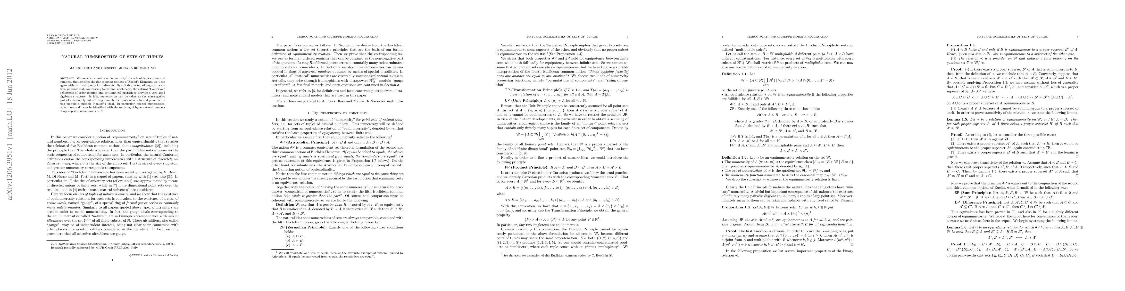 This paper introduces a concept of numerosity for sets of tuples of natural numbers, which aligns with Euclid's five common notions but diverges from cardinality for infinite sets. It demonstrates that this numerosity, when defined Cantorianly, forms a robust algebraic structure, akin to a discretely ordered ring, and identifies it with the semiring of hypernatural numbers from ultrapowers of N.