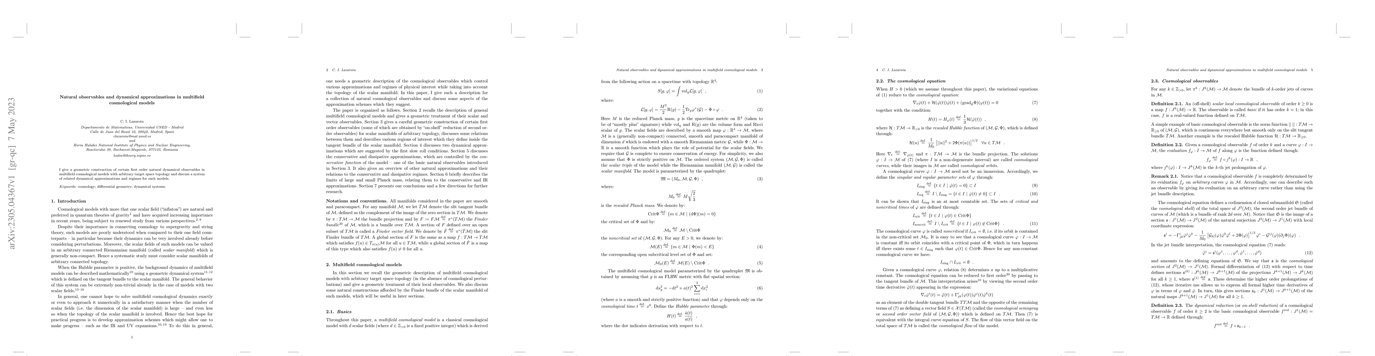 I give a geometric construction of certain first order natural dynamical observables in multifield cosmological models with arbitrary target space topology and discuss a system of related dynamical approximations and regimes for such models.
