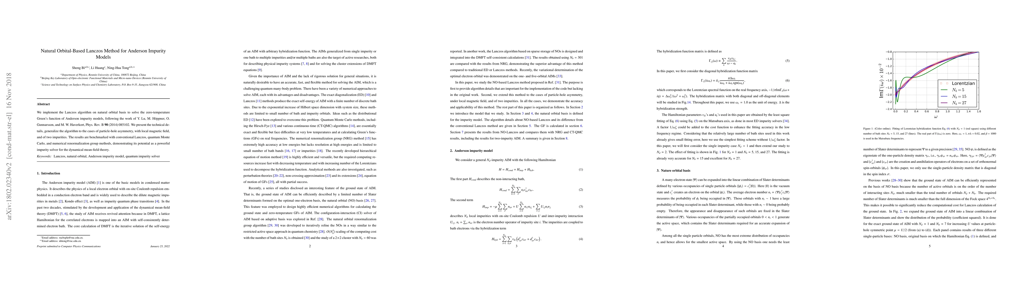 This paper implements the Lanczos algorithm on a natural orbital basis to solve the zero-temperature Green's function for Anderson impurity models, extending the method to handle particle-hole asymmetry, local magnetic fields, and multiple impurities. The proposed method is benchmarked against conventional techniques, showing its effectiveness as a powerful solver for dynamical mean-field theory.