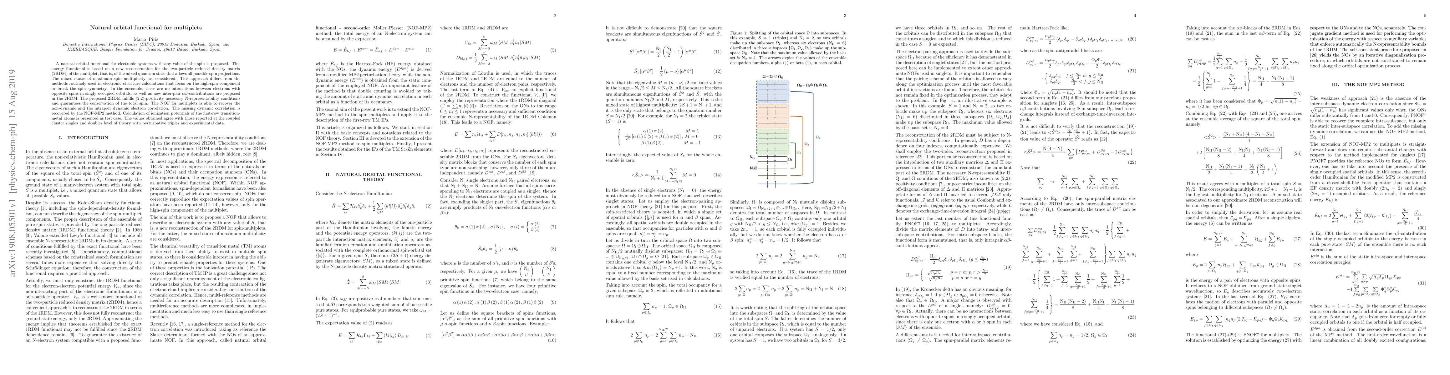 The paper proposes a natural orbital functional for multiplets, based on a new reconstruction of the two-particle reduced density matrix, which fulfills necessary N-representability conditions and conserves total spin. The method recovers both non-dynamic and intrapair dynamic electron correlation, with additional inter-pair contributions, and is tested on first-row transition-metal atoms, showing agreement with coupled cluster and experimental data.