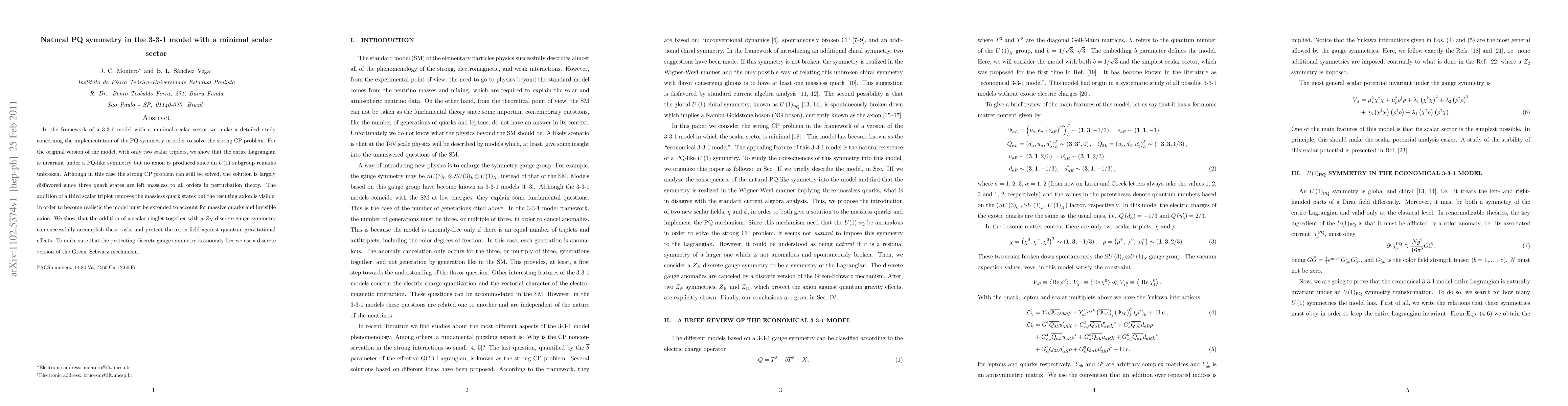 This paper explores the PQ symmetry implementation in a 3-3-1 model with a minimal scalar sector to address the strong CP problem, showing that while the original model can solve the problem, it leaves massless quarks. The addition of a third scalar triplet resolves this but produces a visible axion. The model is extended to include a scalar singlet and a Z_N symmetry to account for massive quarks and an invisible axion, employing a discrete Green-Schwarz mechanism to ensure anomaly freedom.
