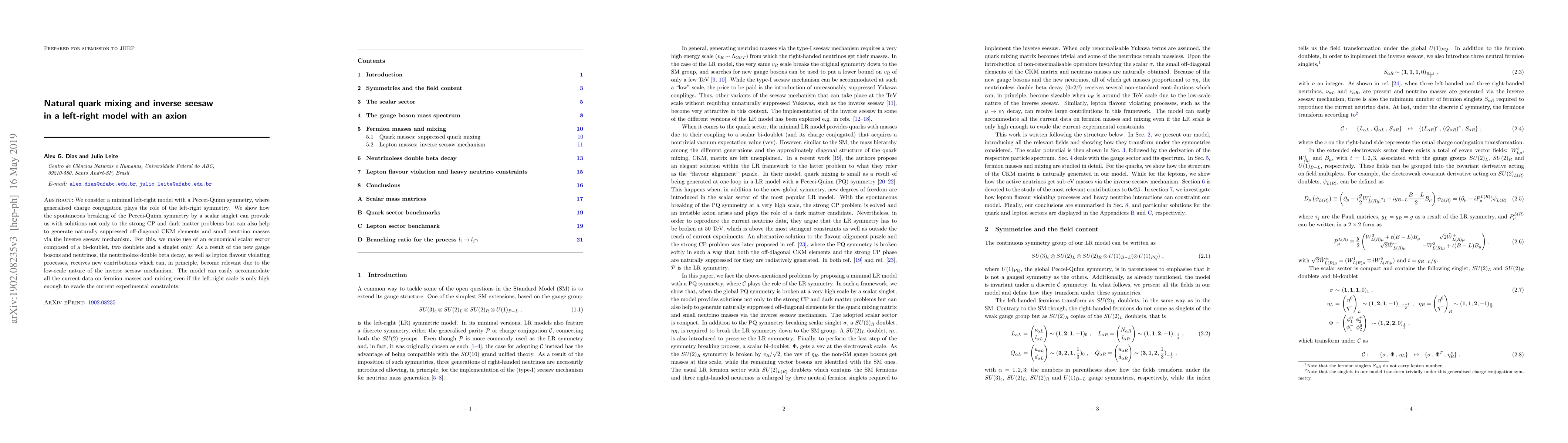 We consider a minimal left-right model with a Peccei-Quinn symmetry, where generalised charge conjugation plays the role of the left-right symmetry. We show how the spontaneous breaking of the Peccei-Quinn symmetry by a scalar singlet can provide us with solutions not only to the strong CP and dark matter problems but can also help to generate naturally suppressed off-diagonal CKM elements and small neutrino masses via the inverse seesaw mechanism. For this, we make use of an economical scalar sector composed of a bi-doublet, two doublets and a singlet only. As a result of the new gauge bosons and neutrinos, the neutrinoless double beta decay, as well as lepton flavour violating processes, receives new contributions which can, in principle, become relevant due to the low-scale nature of the inverse seesaw mechanism. The model can easily accommodate all the current data on fermion masses and mixing even if the left-right scale is only high enough to evade the current experimental constraints.