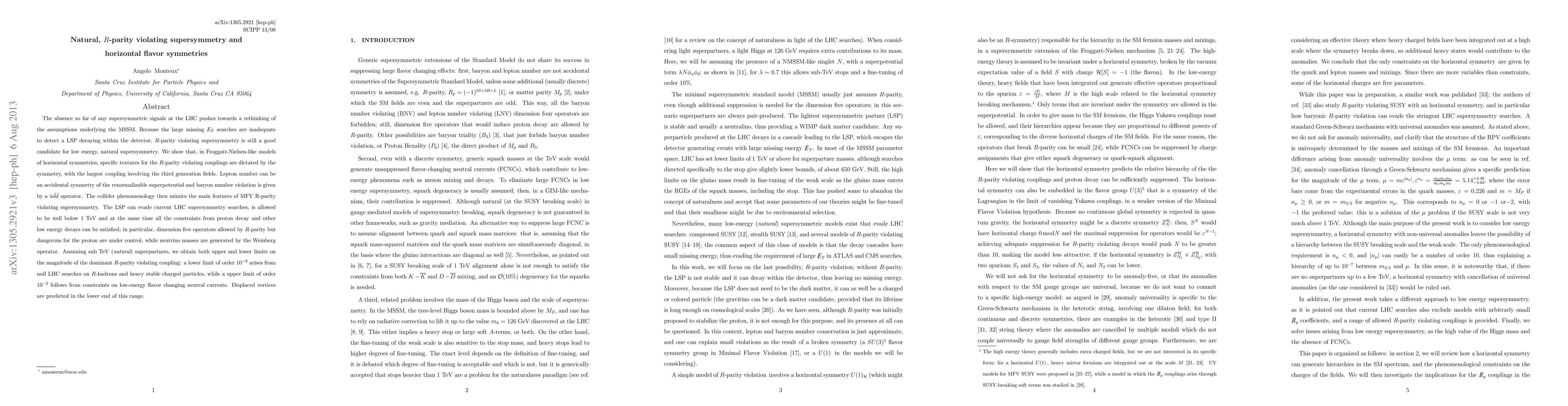 This paper explores R-parity violating supersymmetry in the context of natural, low-energy models, driven by the lack of supersymmetric signals at the LHC. It proposes that specific textures for R-parity violating couplings can be dictated by horizontal flavor symmetries, leading to a viable LSP that can evade current LHC searches while satisfying proton decay constraints and generating neutrino masses via the Weinberg operator.