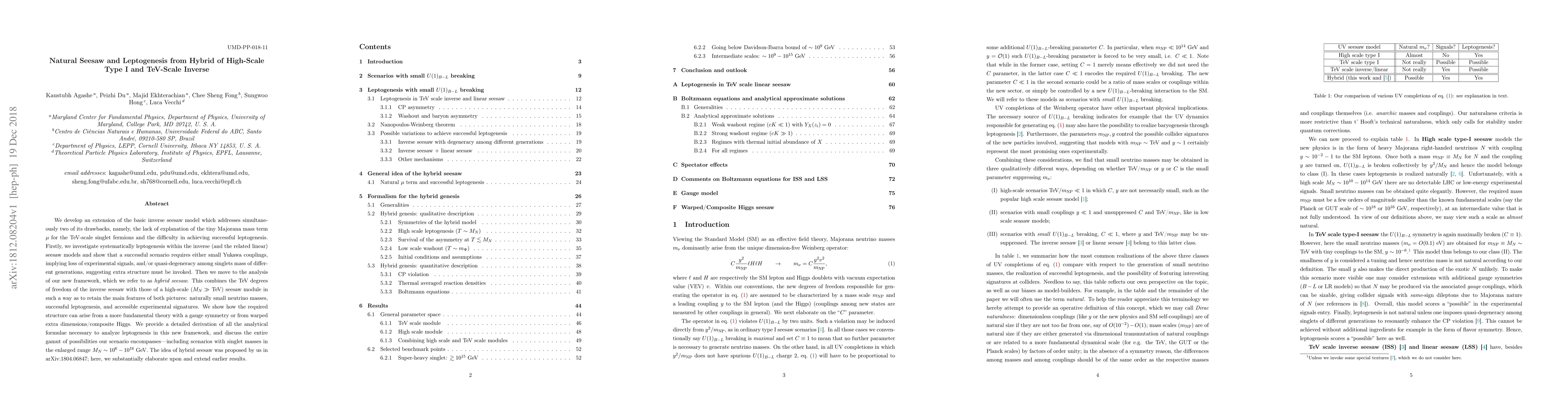 This paper proposes a hybrid seesaw model that combines high-scale and TeV-scale seesaw mechanisms to naturally explain small neutrino masses, achieve successful leptogenesis, and maintain accessible experimental signatures. The authors elaborate on their earlier idea, providing detailed analytical derivations and exploring scenarios with singlet masses ranging from $10^6$ to $10^{16}$ GeV.