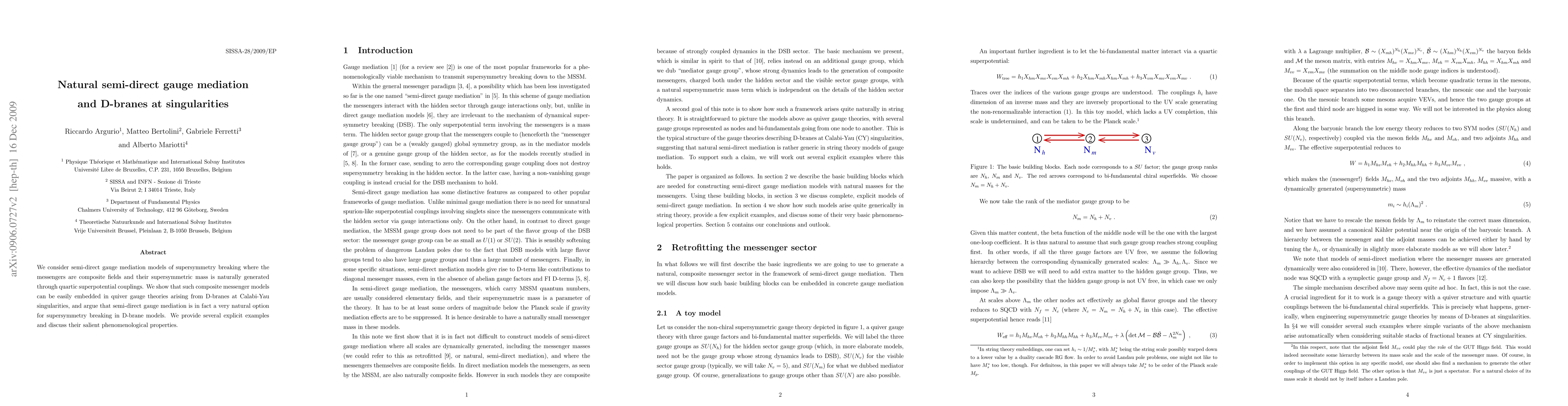 This paper explores semi-direct gauge mediation in supersymmetry breaking where composite fields naturally generate messenger masses via quartic couplings. It demonstrates how such models fit into quiver gauge theories from D-branes at Calabi-Yau singularities, advocating for their naturalness in D-brane frameworks and presenting explicit examples.