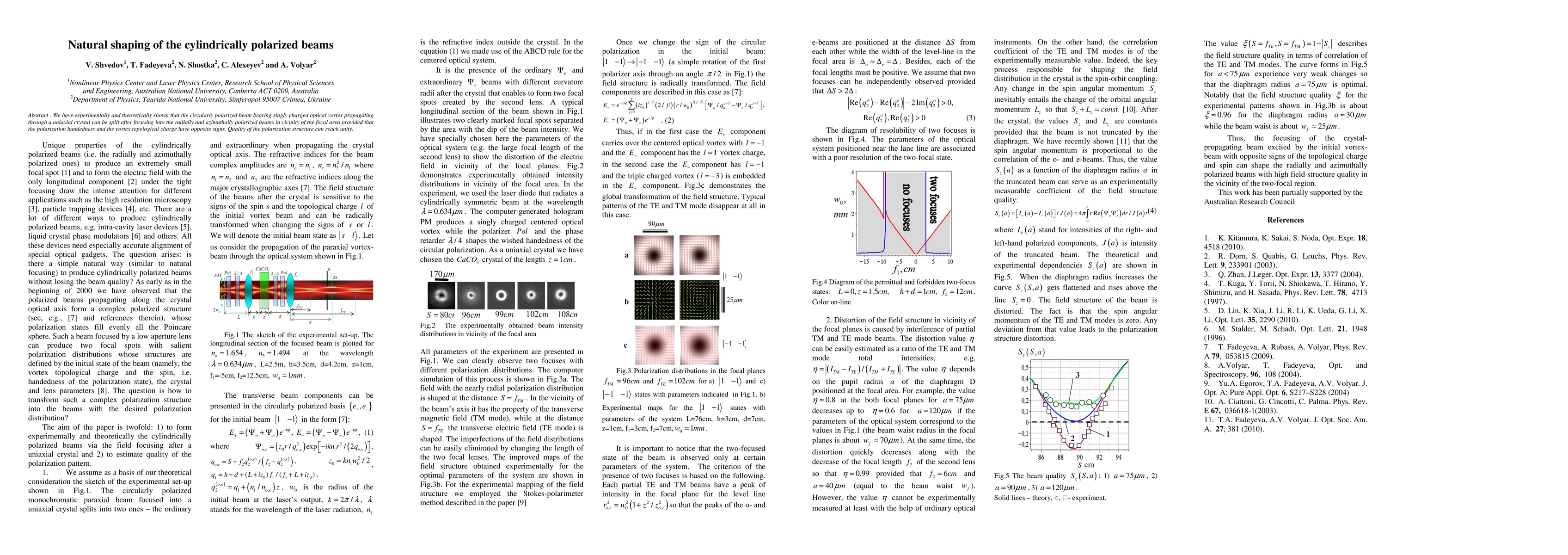 We have experimentally and theoretically shown that the circularly polarized beam bearing singly charged optical vortex propagating through a uniaxial crystal can be split after focusing into the radially and azimuthally polarized beams in vicinity of the focal area provided that the polarization handedness and the vortex topological charge have opposite signs. Quality of the polarization structure can reach unity.