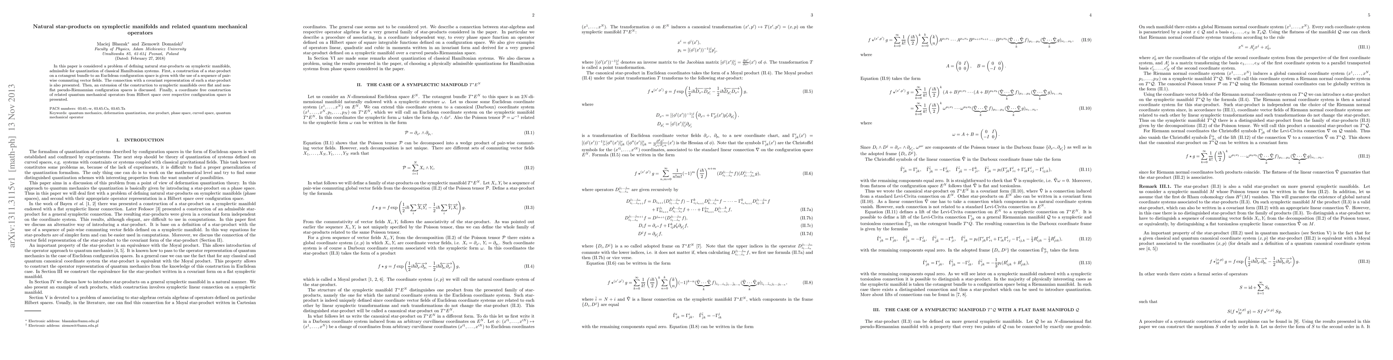 This paper constructs natural star-products on symplectic manifolds for Hamiltonian system quantization, extending the approach from cotangent bundles to more general configurations, and presents a coordinate-free method for deriving related quantum mechanical operators.