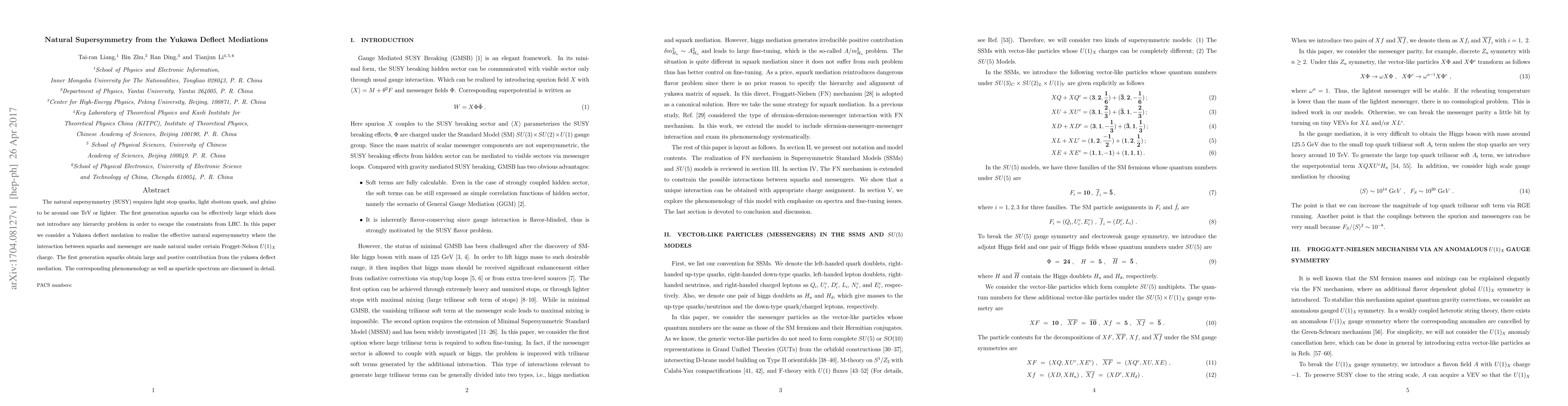 The natural supersymmetry (SUSY) requires light stop quarks, light sbottom quark, and gluino to be around one TeV or lighter. The first generation squarks can be effectively large which does not introduce any hierarchy problem in order to escape the constraints from LHC. In this paper we consider a Yukawa deflect medation to realize the effective natural supersymmetry where the interaction between squarks and messenger are made natural under certain Frogget-Nelson $U(1)_X$ charge. The first generation squarks obtain large and postive contribution from the yukawa deflect mediation. The corresponding phenomenology as well as sparticle spectrum are discussed in detail.