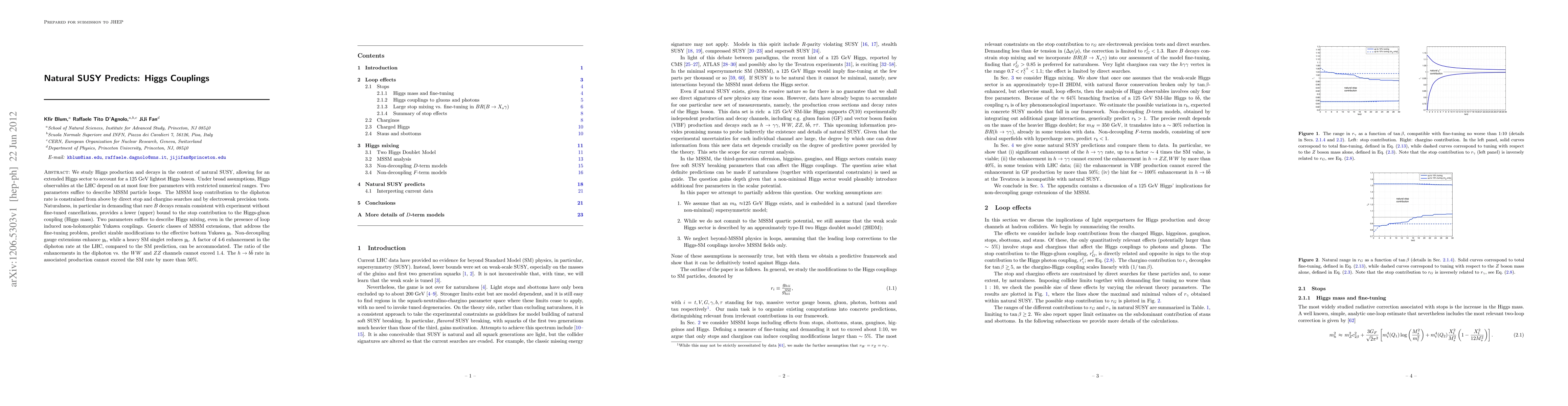 We study Higgs production and decays in the context of natural SUSY, allowing for an extended Higgs sector to account for a 125 GeV lightest Higgs boson. Under broad assumptions, Higgs observables at the LHC depend on at most four free parameters with restricted numerical ranges. Two parameters suffice to describe MSSM particle loops. The MSSM loop contribution to the diphoton rate is constrained from above by direct stop and chargino searches and by electroweak precision tests. Naturalness, in particular in demanding that rare B decays remain consistent with experiment without fine-tuned cancellations, provides a lower (upper) bound to the stop contribution to the Higgs-gluon coupling (Higgs mass). Two parameters suffice to describe Higgs mixing, even in the presence of loop induced non-holomorphic Yukawa couplings. Generic classes of MSSM extensions, that address the fine-tuning problem, predict sizable modifications to the effective bottom Yukawa, yb. Non-decoupling gauge extensions enhance yb, while a heavy SM singlet reduces yb. A factor of 4-6 enhancement in the diphoton rate at the LHC, compared to the SM prediction, can be accommodated. The ratio of the enhancements in the diphoton vs. the WW and ZZ channels cannot exceed 1.4. The h to bbbar rate in associated production cannot exceed the SM rate by more than 50%.