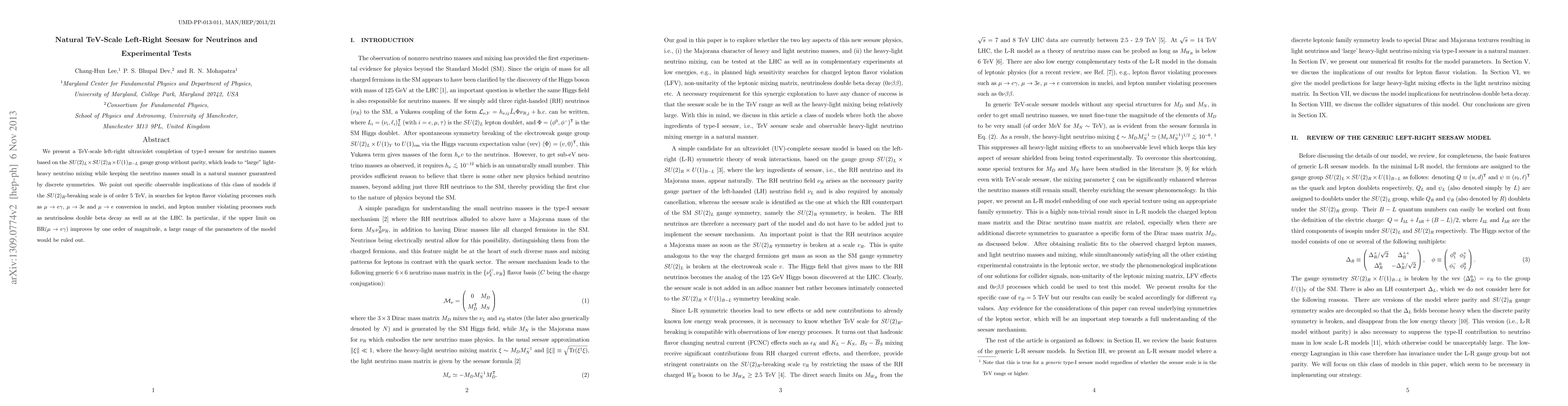 This paper proposes a TeV-scale left-right symmetric model for neutrino masses based on $SU(2)_L\times SU(2)_R\times U(1)_{B-L}$ gauge symmetry, predicting significant light-heavy neutrino mixing and small neutrino masses. It outlines experimental tests, including searches for lepton flavor violation and lepton number violation, which could rule out large parameter ranges if certain limits improve.
