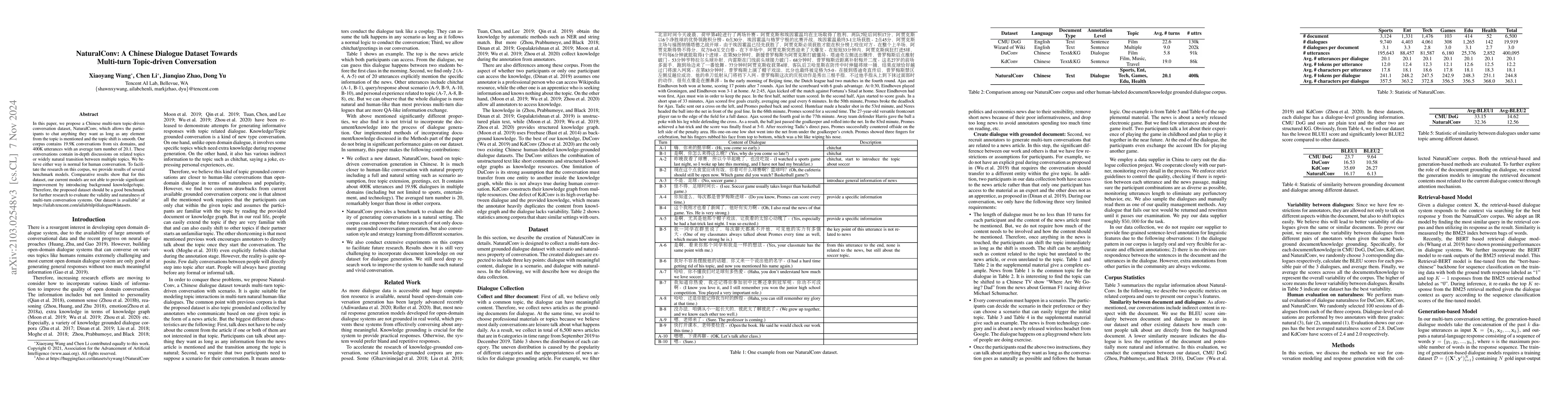 NaturalConv is a Chinese multi-turn topic-driven conversation dataset with a focus on natural topic transitions and in-depth discussions, serving as a benchmark for evaluating conversation systems.
