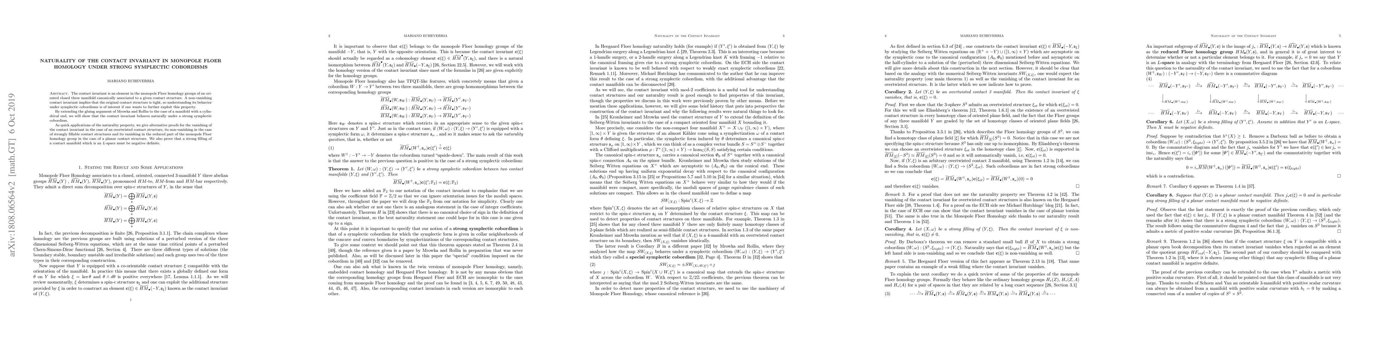 Researchers prove that contact invariants in monopole Floer homology groups behave naturally under strong symplectic cobordisms, with implications for understanding tight contact structures and filling conditions.