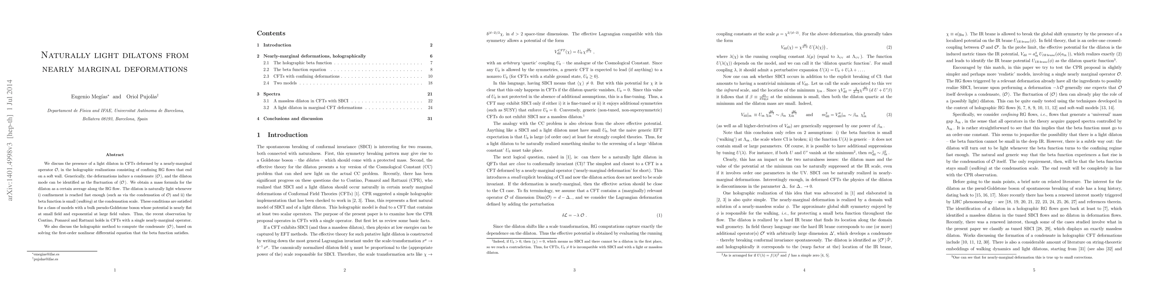 We discuss the presence of a light dilaton in CFTs deformed by a