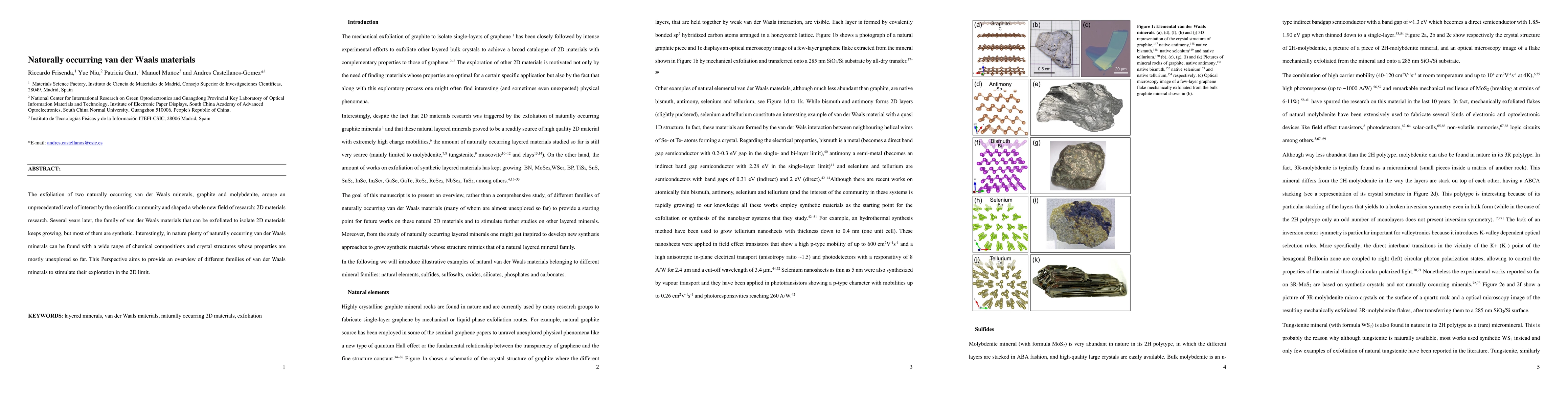 The paper reviews naturally occurring van der Waals minerals like graphite and molybdenite, highlighting the largely unexplored potential of other natural van der Waals materials for 2D material research. It aims to encourage further investigation into these minerals to discover their properties and applications.