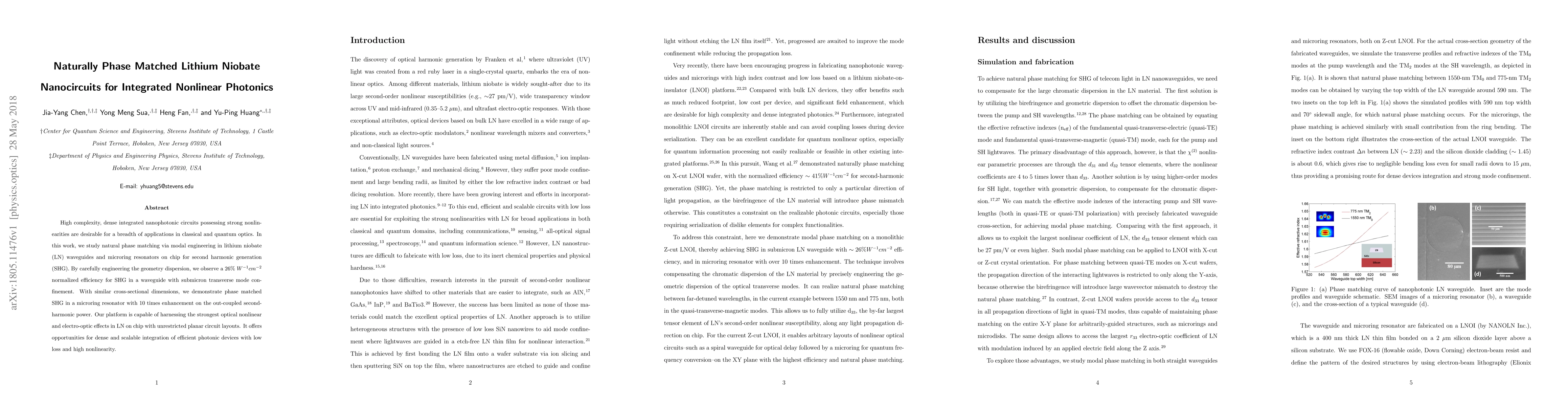 This paper investigates naturally phase matched lithium niobate nanocircuits for integrated nonlinear photonics, achieving a $26\%~W^{-1}cm^{-2}$ normalized efficiency for second harmonic generation in waveguides and a 10-fold enhancement in microring resonators. The platform enables dense, scalable, and efficient photonic devices with low loss and high nonlinearity.