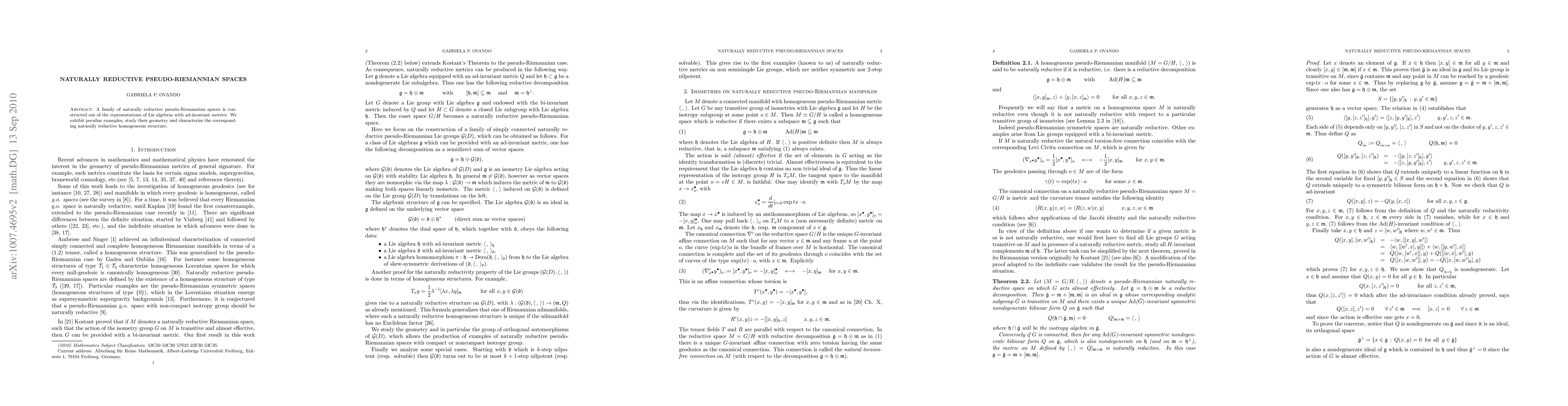 This paper constructs naturally reductive pseudo-Riemannian spaces from representations of Lie algebras with ad-invariant metrics, explores peculiar examples, and characterizes their geometry and homogeneous structure.