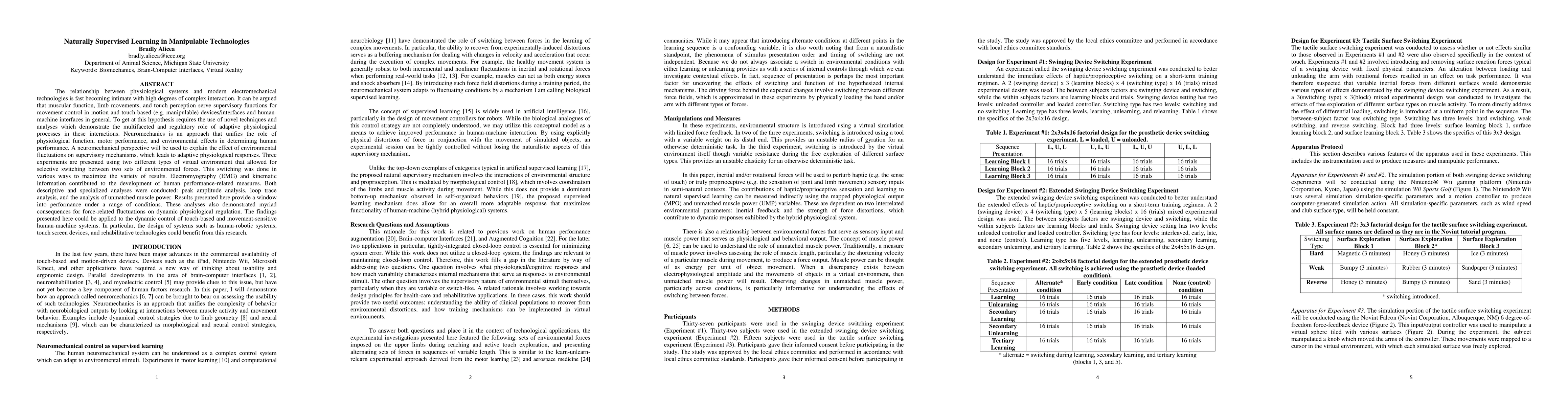 The relationship between physiological systems and modern electromechanical technologies is fast becoming intimate with high degrees of complex interaction. It can be argued that muscular function, limb movements, and touch perception serve supervisory functions for movement control in motion and touch-based (e.g. manipulable) devices/interfaces and human-machine interfaces in general. To get at this hypothesis requires the use of novel techniques and analyses which demonstrate the multifaceted and regulatory role of adaptive physiological processes in these interactions. Neuromechanics is an approach that unifies the role of physiological function, motor performance, and environmental effects in determining human performance. A neuromechanical perspective will be used to explain the effect of environmental fluctuations on supervisory mechanisms, which leads to adaptive physiological responses. Three experiments are presented using two different types of virtual environment that allowed for selective switching between two sets of environmental forces. This switching was done in various ways to maximize the variety of results. Electromyography (EMG) and kinematic information contributed to the development of human performance-related measures. Both descriptive and specialized analyses were conducted: peak amplitude analysis, loop trace analysis, and the analysis of unmatched muscle power. Results presented here provide a window into performance under a range of conditions. These analyses also demonstrated myriad consequences for force-related fluctuations on dynamic physiological regulation. The findings presented here could be applied to the dynamic control of touch-based and movement-sensitive human-machine systems. In particular, the design of systems such as human-robotic systems, touch screen devices, and rehabilitative technologies could benefit from this research.