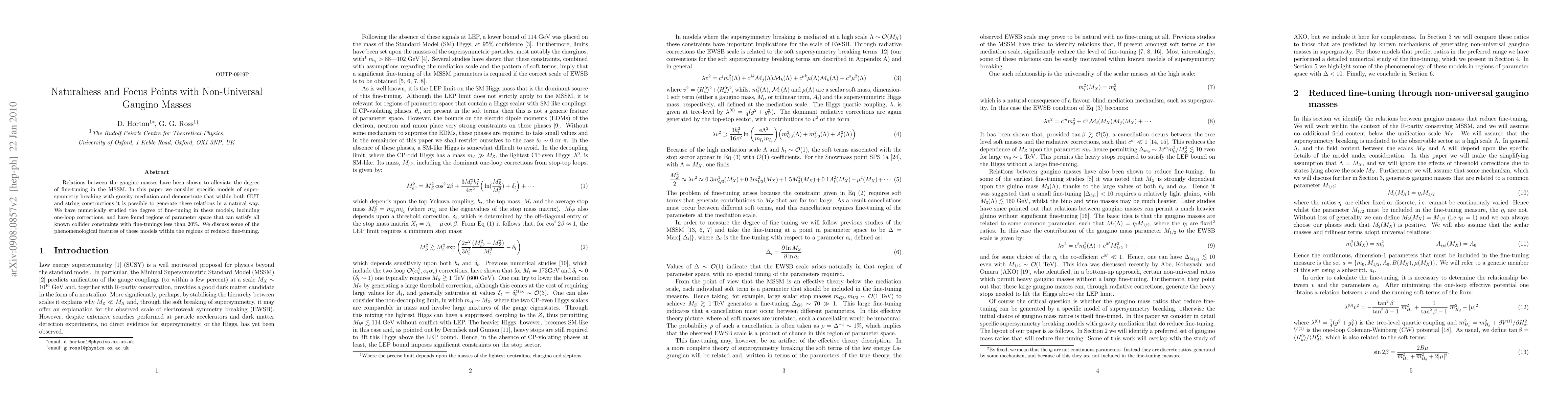Relations between the gaugino masses have been shown to alleviate the degree of fine-tuning in the MSSM. In this paper we consider specific models of supersymmetry breaking with gravity mediation and demonstrate that within both GUT and string constructions it is possible to generate these relations in a natural way. We have numerically studied the degree of fine-tuning in these models, including one-loop corrections, and have found regions of parameter space that can satisfy all known collider constraints with fine-tunings less than 20%. We discuss some of the phenomenological features of these models within the regions of reduced fine-tuning.